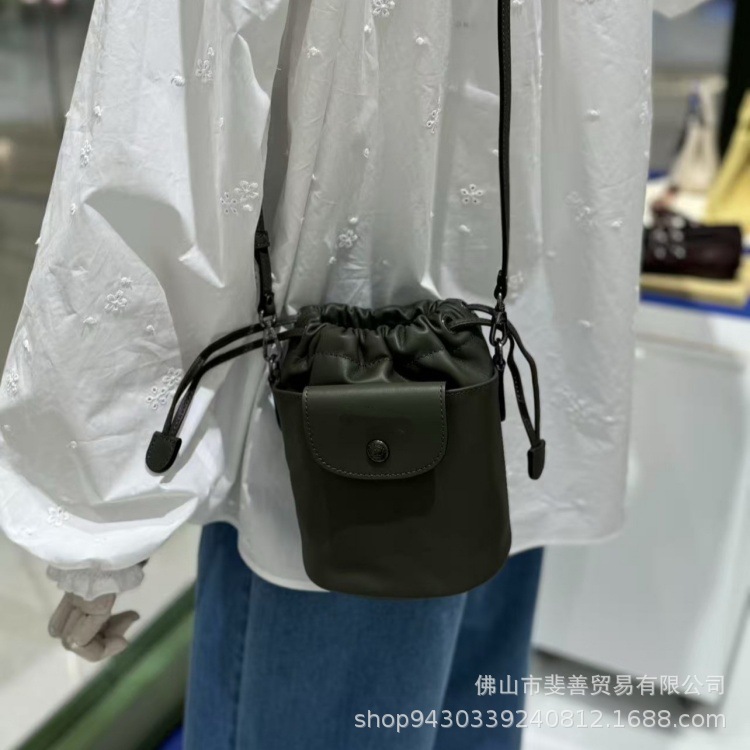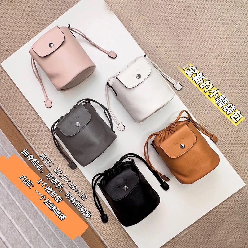 法国龙镶抽绳水桶包王曼昱同款小福袋包牛皮小水桶迷你单肩斜挎包