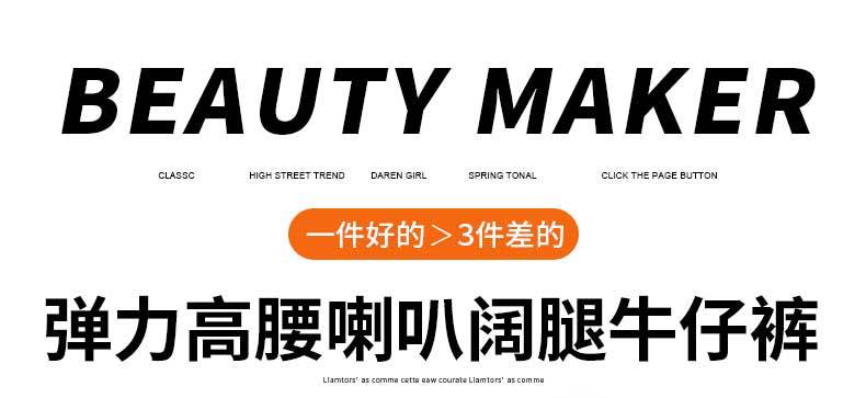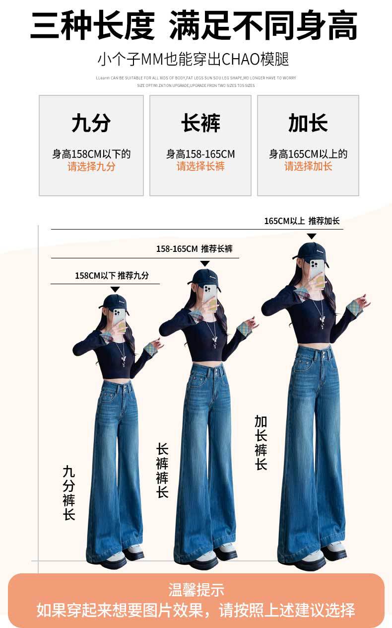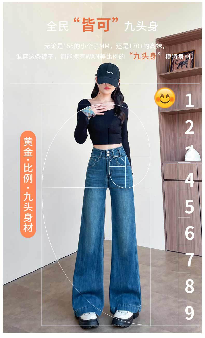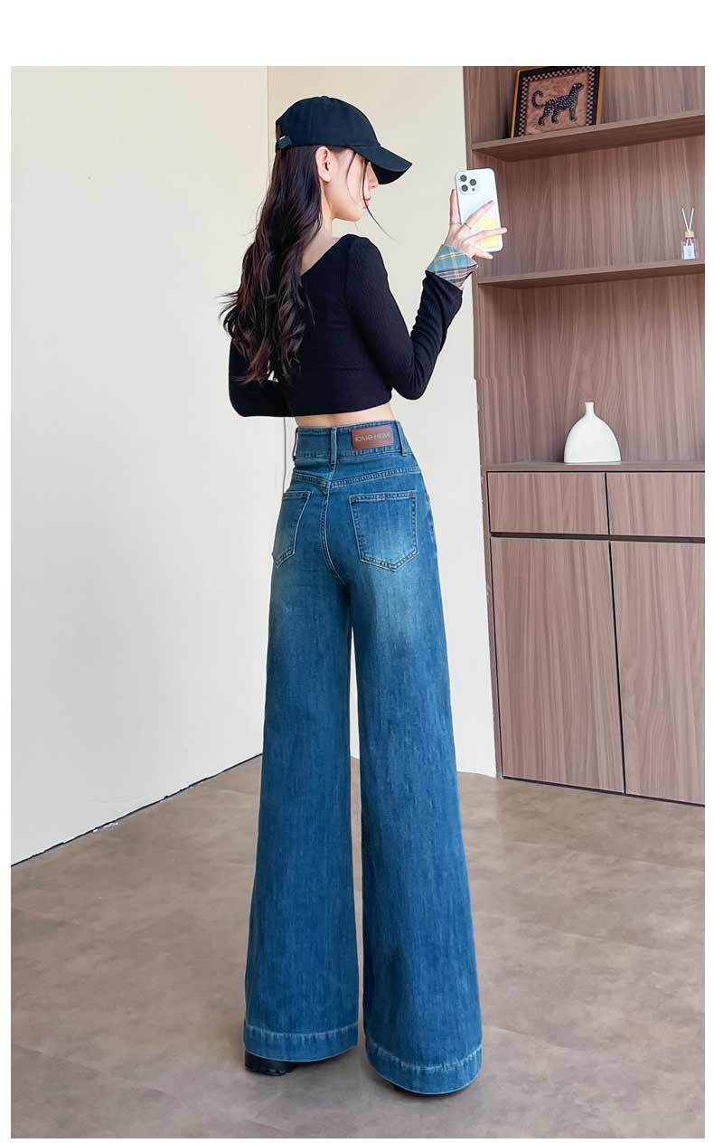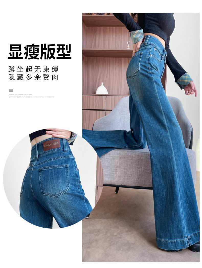 双扣高腰微喇牛仔裤女2026秋季弹力宽版遮肉遮腿型阔腿大喇叭裤子