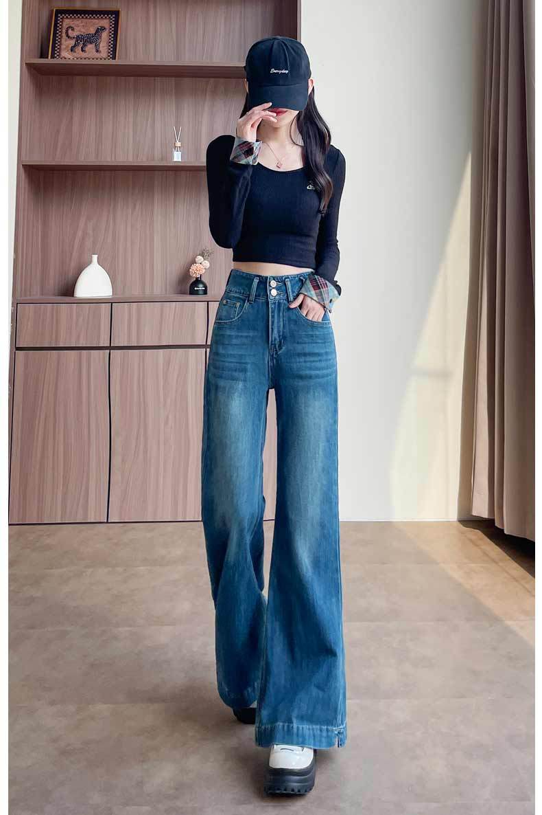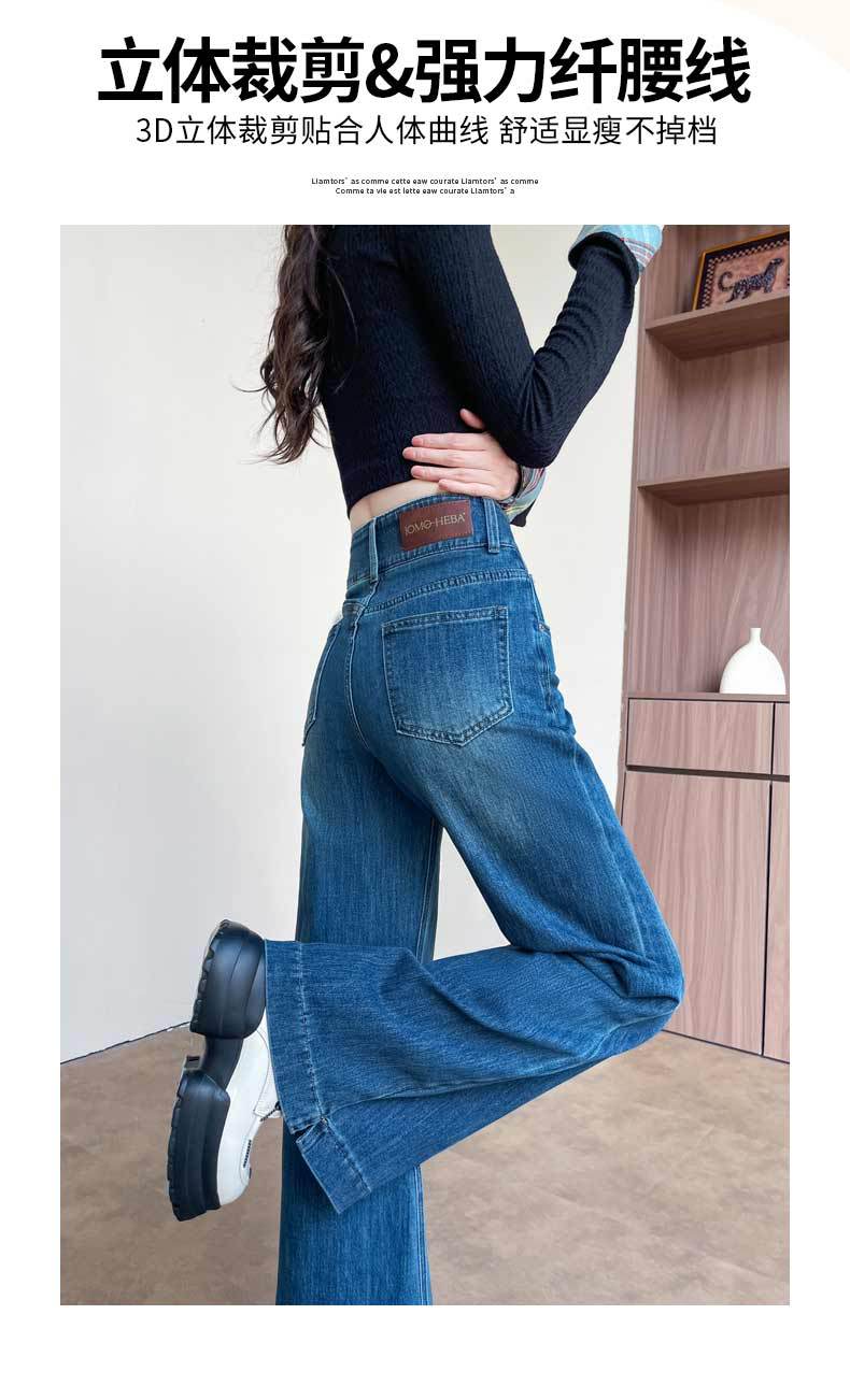 加绒不贴腿喇叭牛仔裤女秋冬季2025新款宽松独特爆款高级直筒裤子