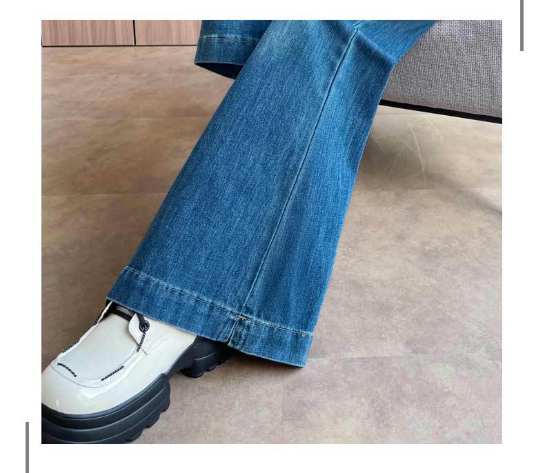 2025年春秋向け、高級感のあるラインストーン付き、小柄な女性向け、重工仕様の馬蹄型フレアデニムパンツ