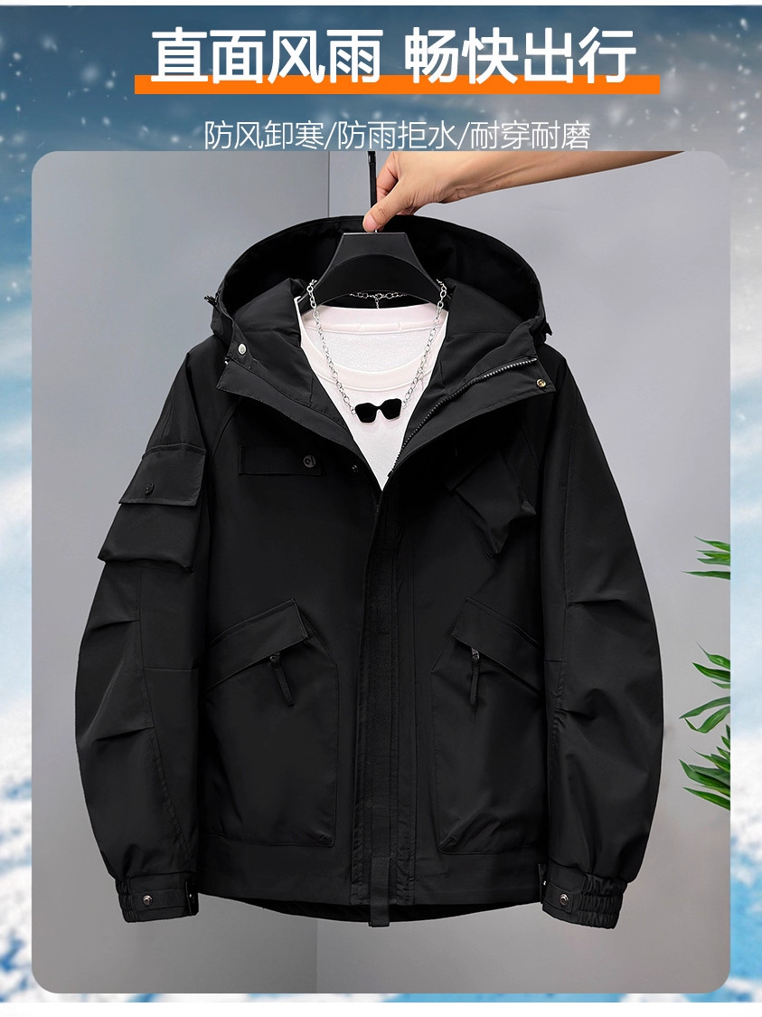 三防冲锋衣外套春秋新款工装夹克帅秋季潮工装胖子大码外套