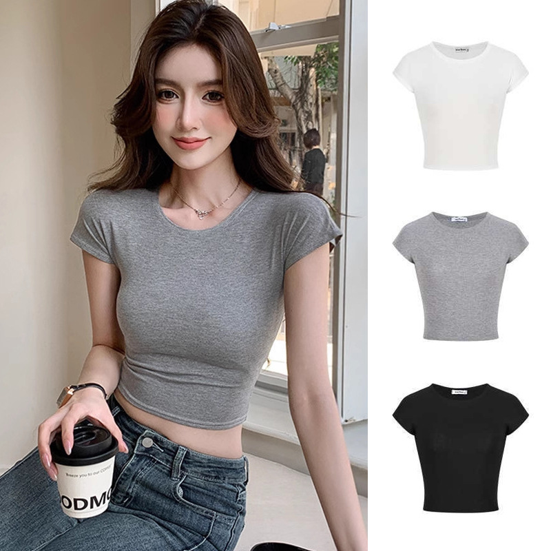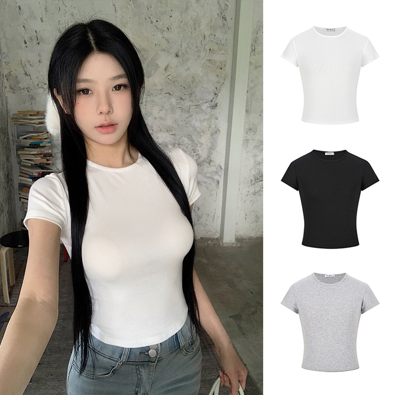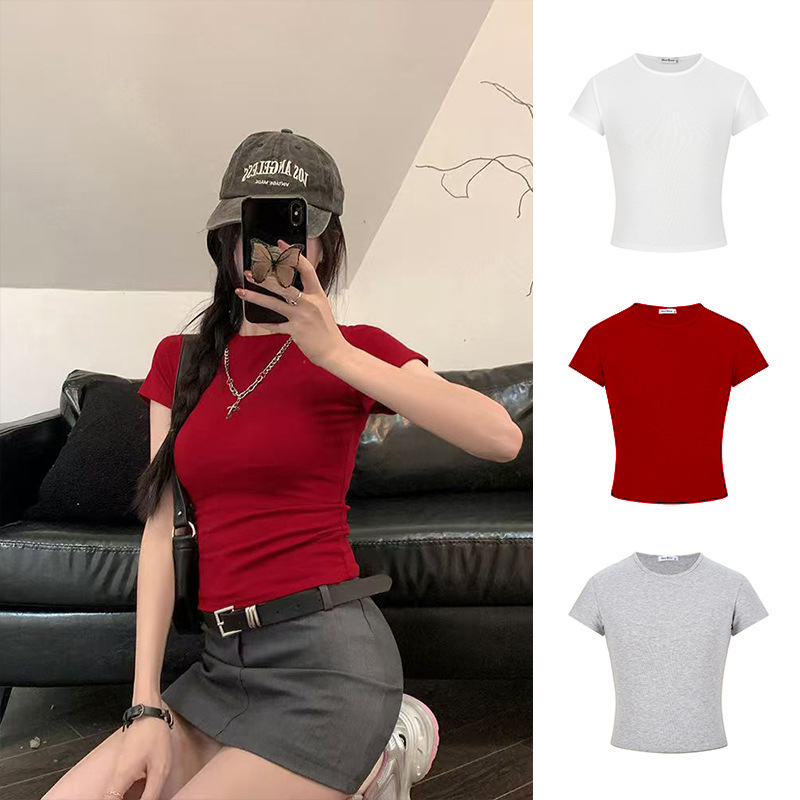 東南アジア風クロップド丈半袖Tシャツ レディース 2025年夏 ホワイト ベースレイヤー トップス セクシー系