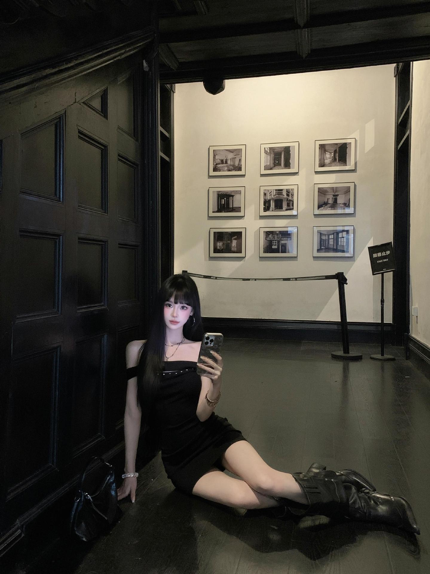 女性用のロイヤルシスター風ブラックワンショルダーチューブトップドレス、夏の気質、胸巻き、胸パッド付きショートスカート、フィッシュボーンヒップスカート