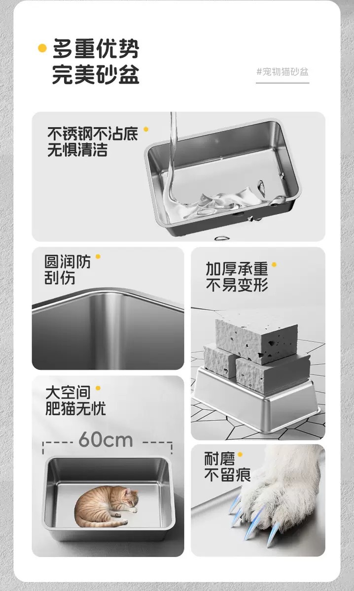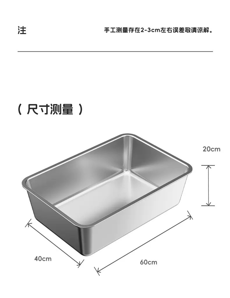 跨境不锈钢猫砂盆超大号加厚猫厕所开放式加深防外溅猫砂专用盆