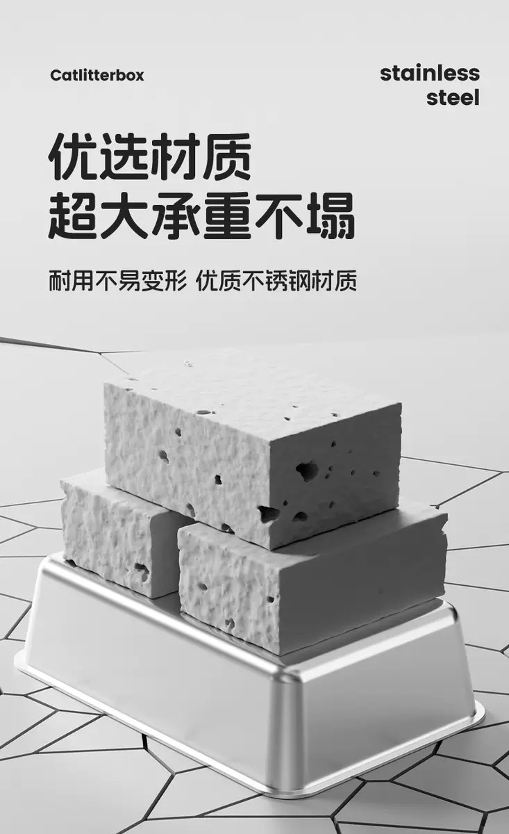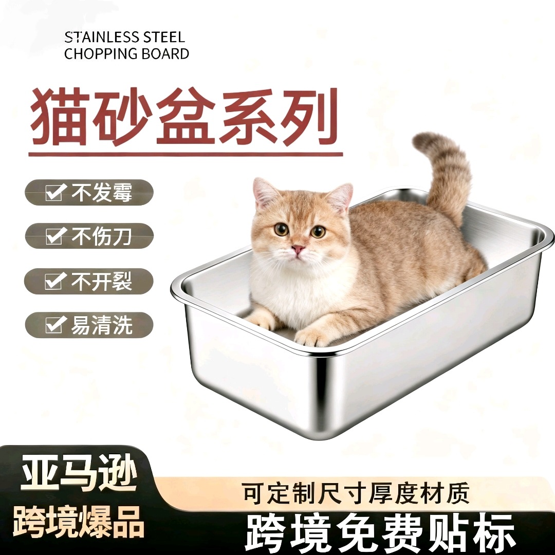 クロスボーダーステンレス鋼猫トイレ大型ペットトイレ防食平底正方形洗面器卸売深化と肥厚猫トイレ