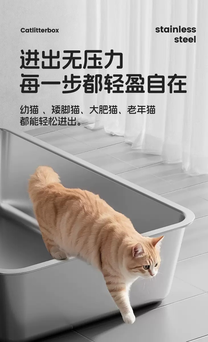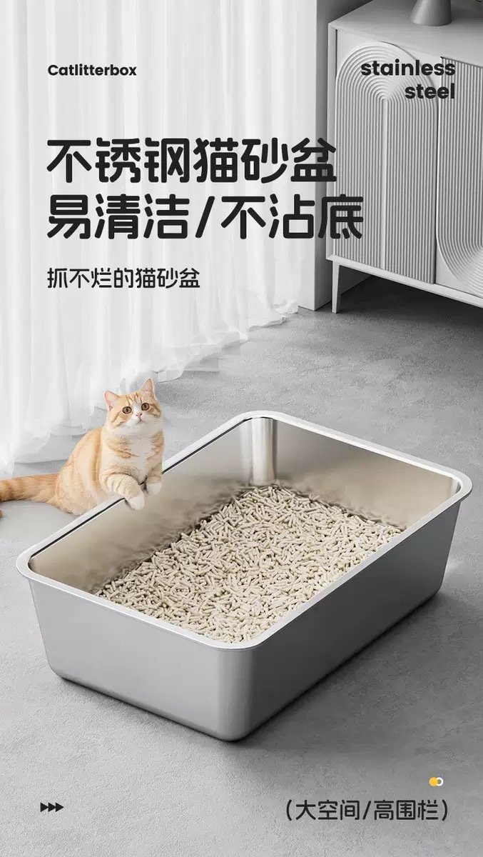 跨境批发不锈钢猫砂盆猫咪特大号开放式猫厕所防外溅防臭猫屎盆