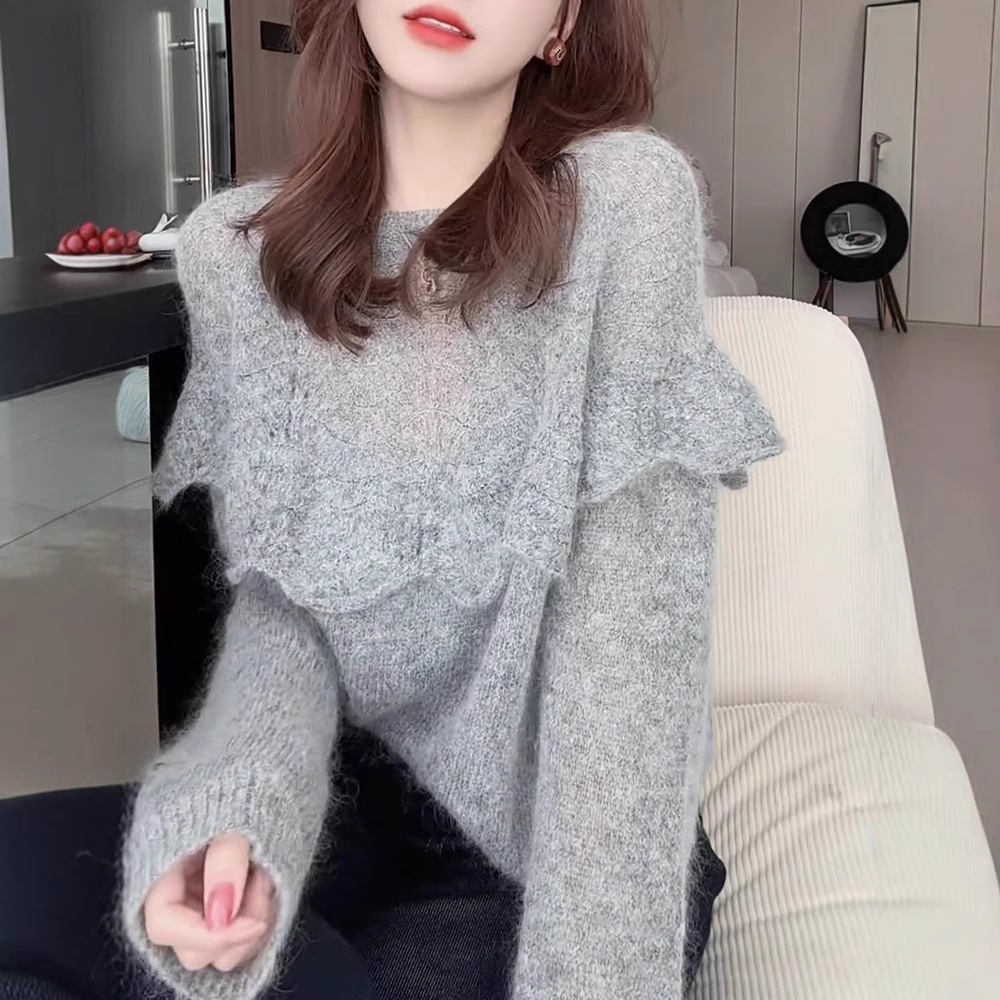 韩系慵懒灰色毛衣外套女秋冬新款宽松慵懒松弛感宽松软糯针织开衫