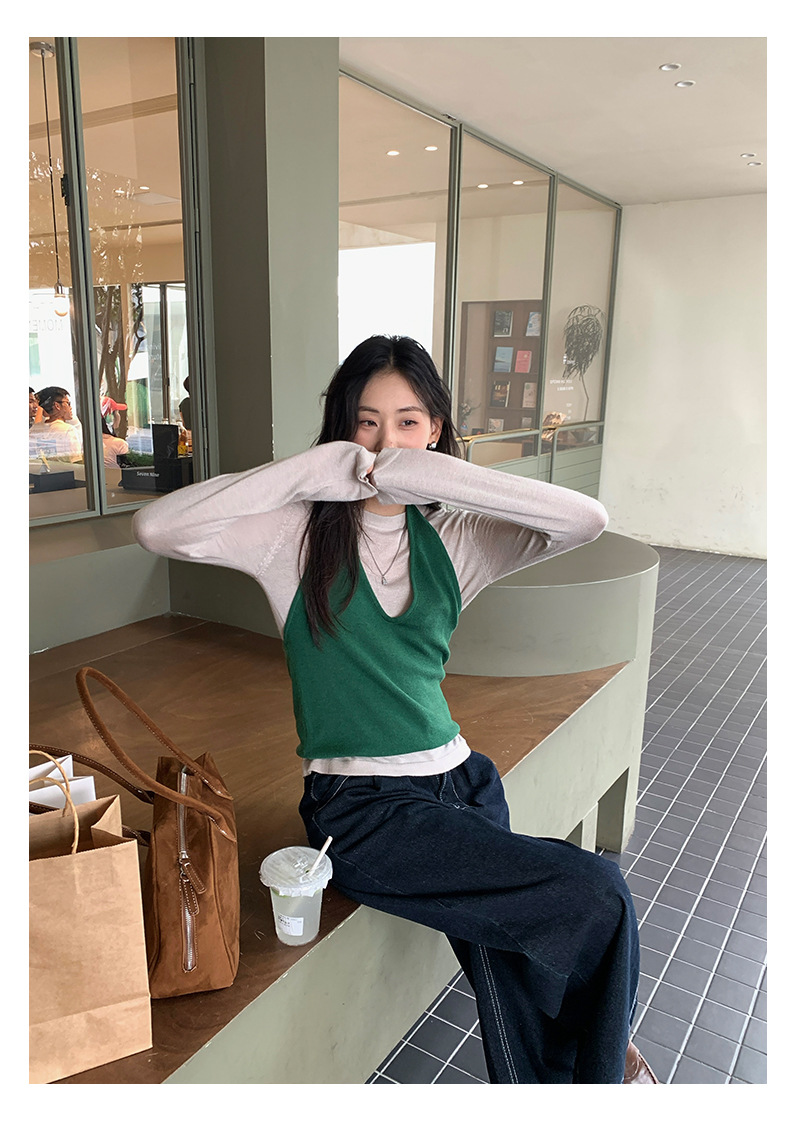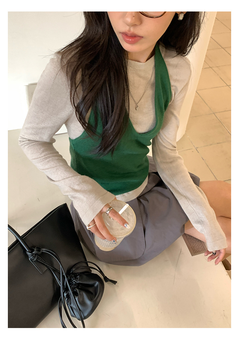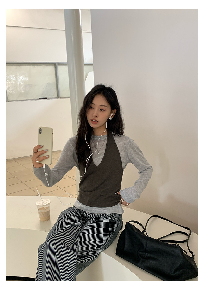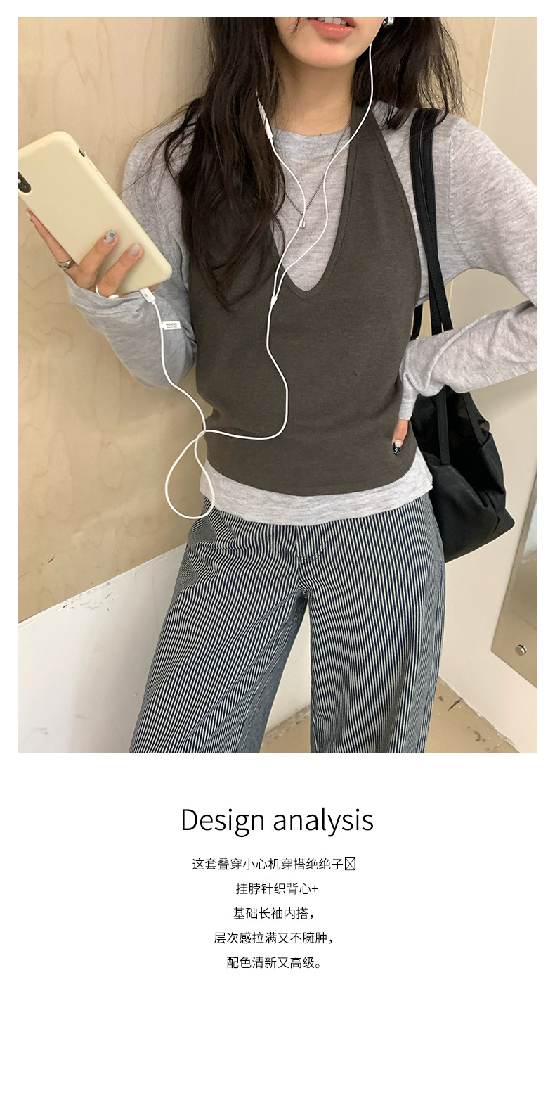 广州黄峥早秋穿搭上衣韩系氛围感穿搭毛织两件套长袖针织衫530067