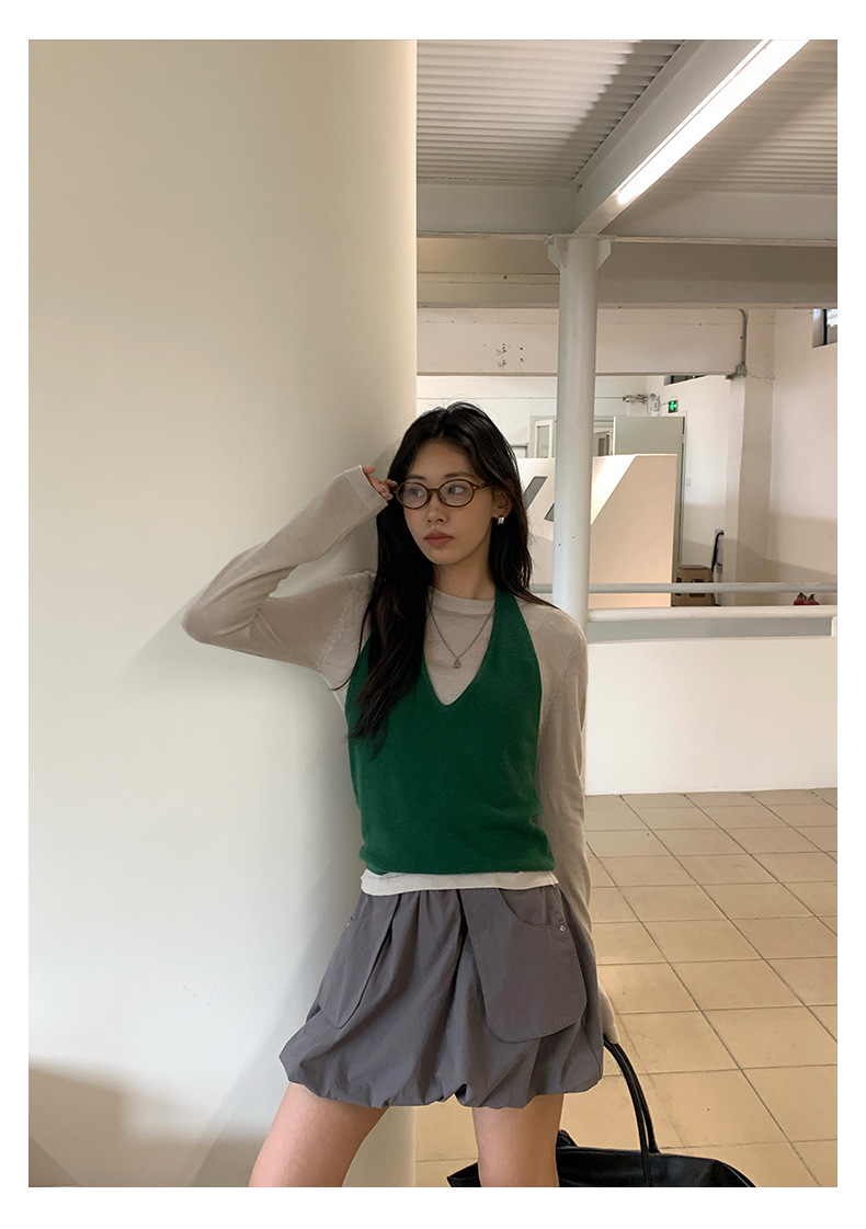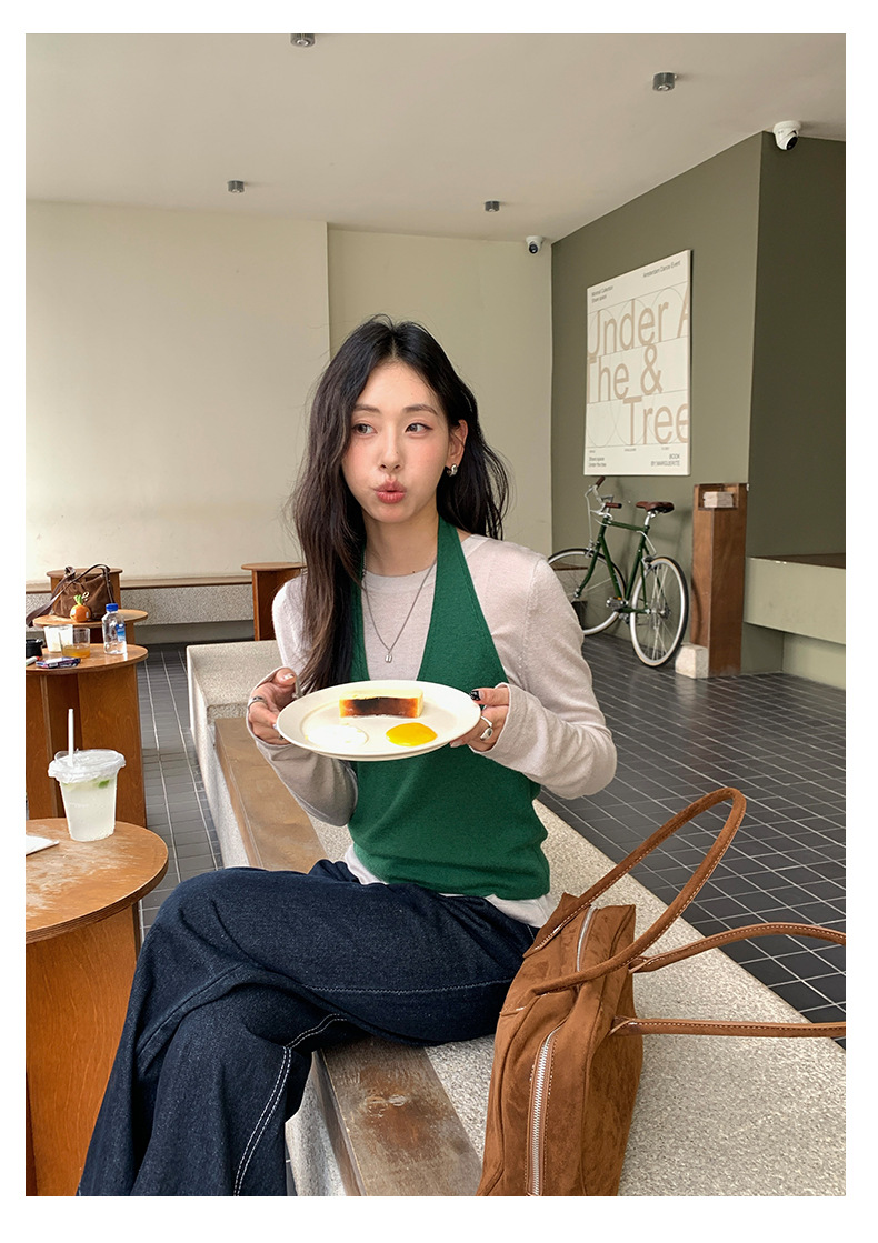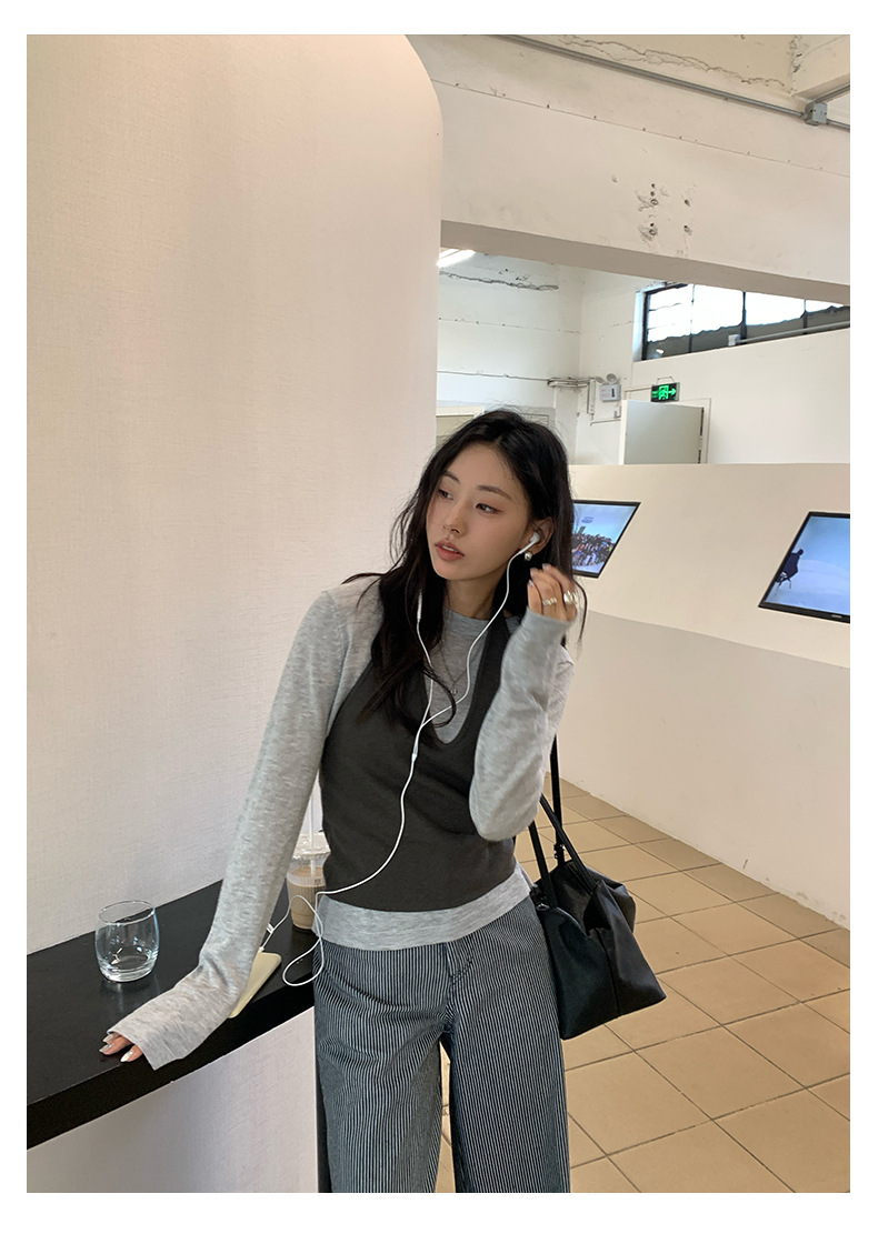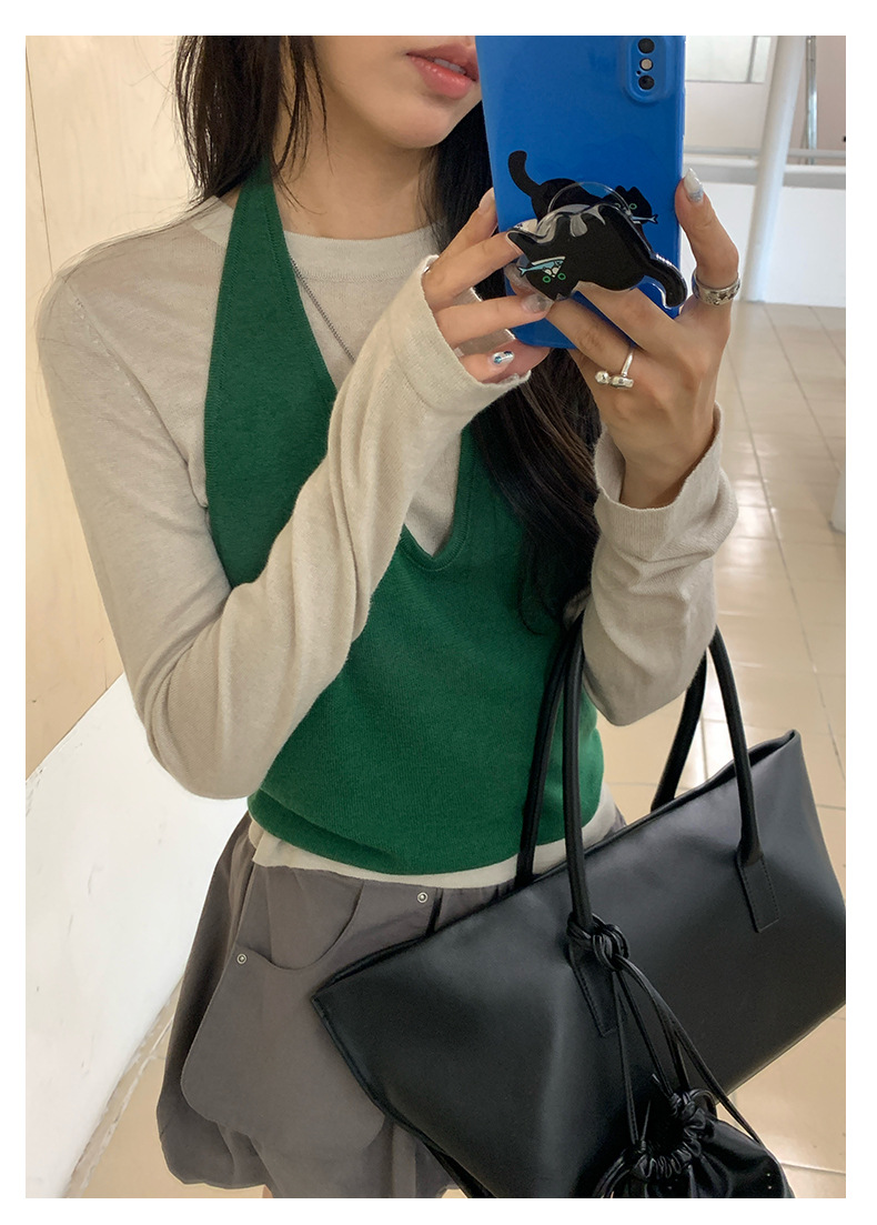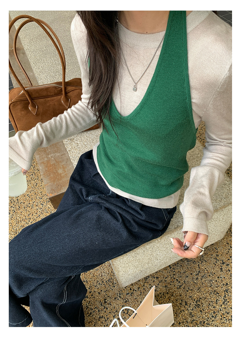 广州黄峥早秋穿搭上衣韩系氛围感穿搭毛织两件套长袖针织衫530067