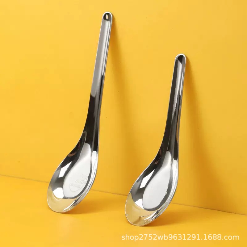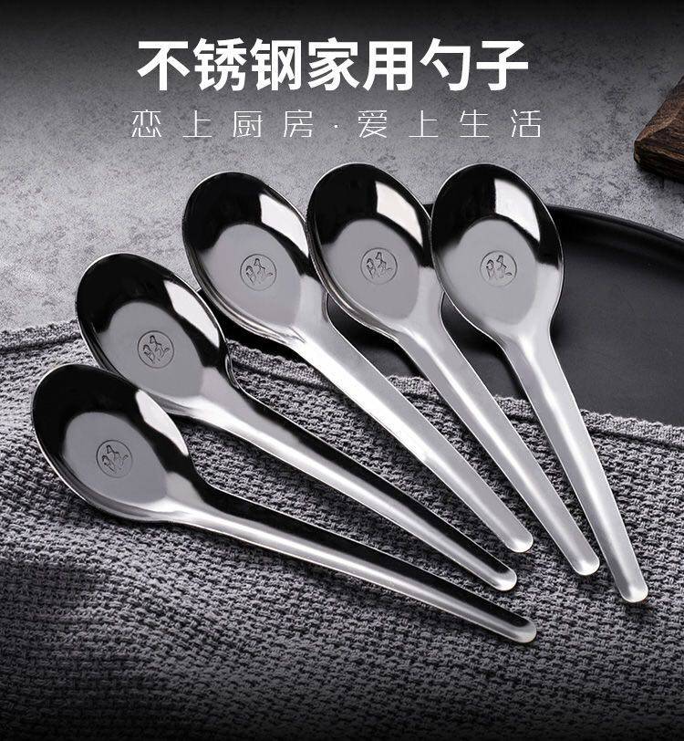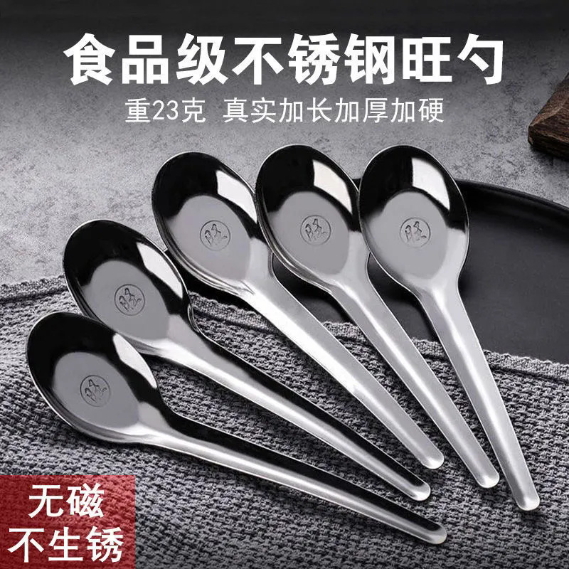 加厚不锈钢家用平底小勺子长柄喝汤西瓜勺食堂学生吃饭勺平底旺勺
