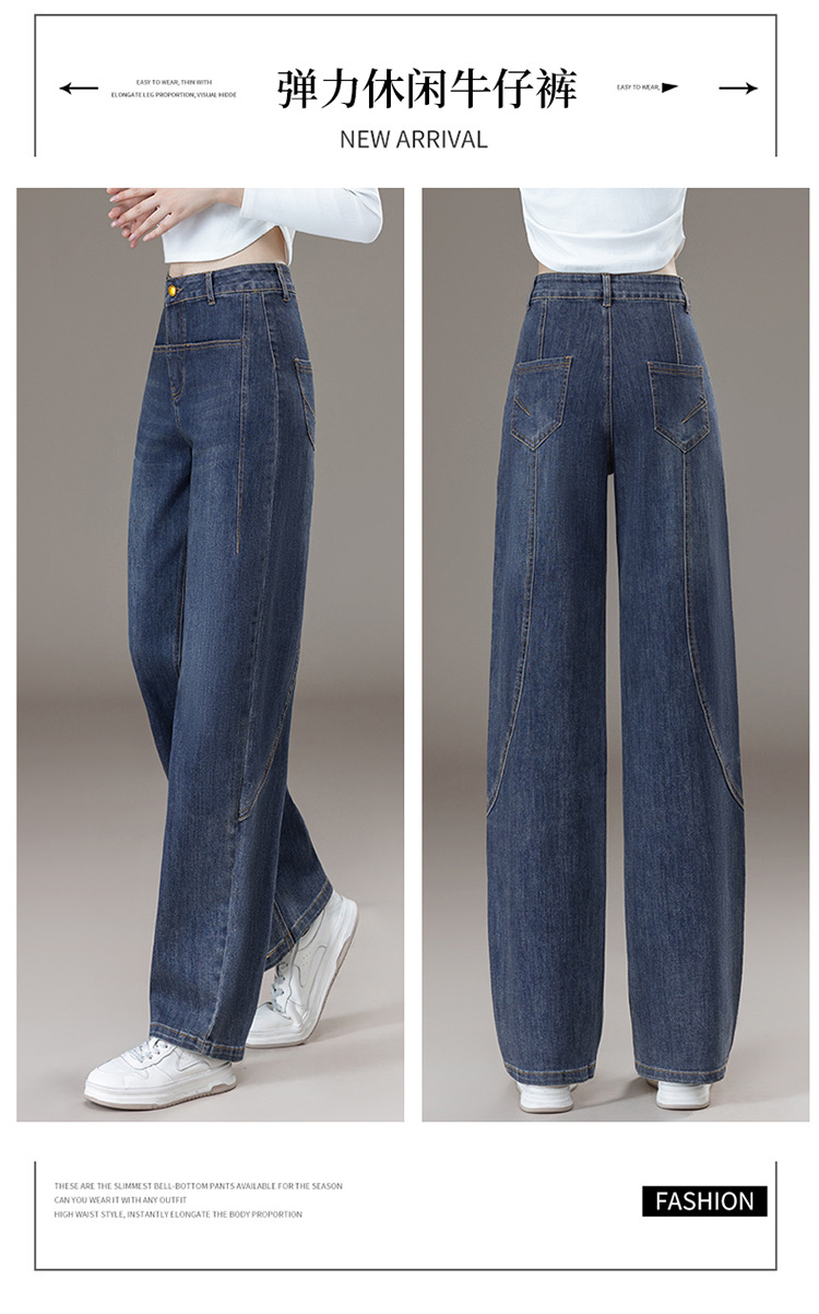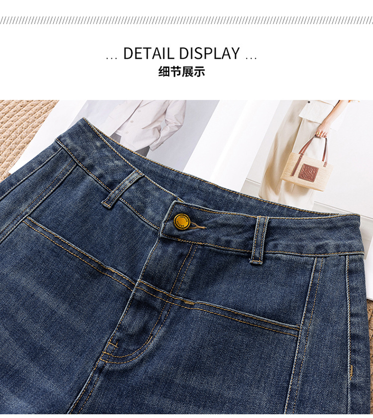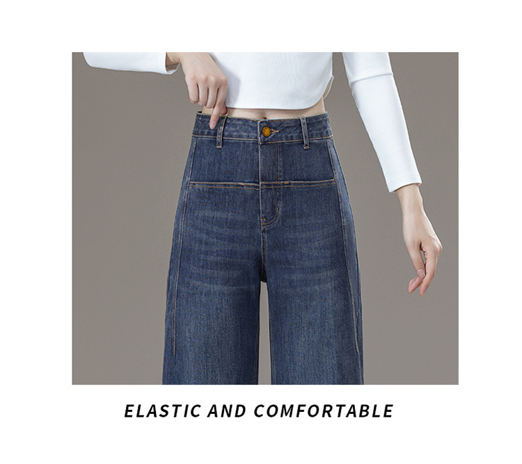 ハイウエストデニムブーツカットパンツ女性のための春、秋、冬の新スタイル弾性ウエスト痩身カジュアルストレートフレアパンツ
