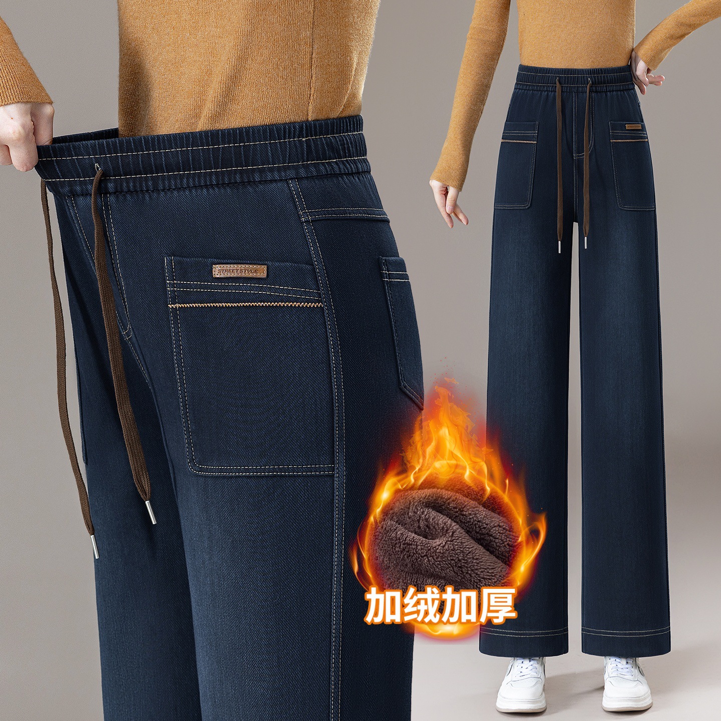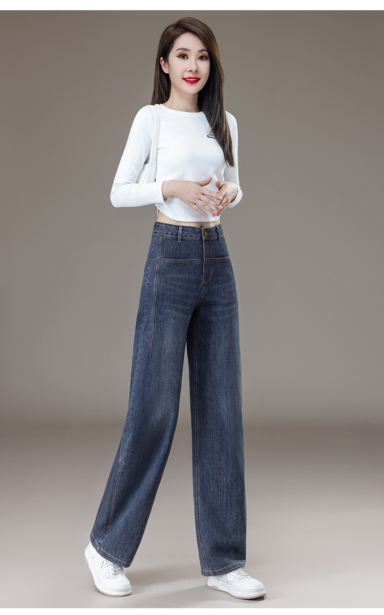 女性のための弾性ウエストジーンズ 2025 新しい秋と冬のハイウエストプラスベルベット痩身狭いワイドレッグパンツ女性のストレートパンツ