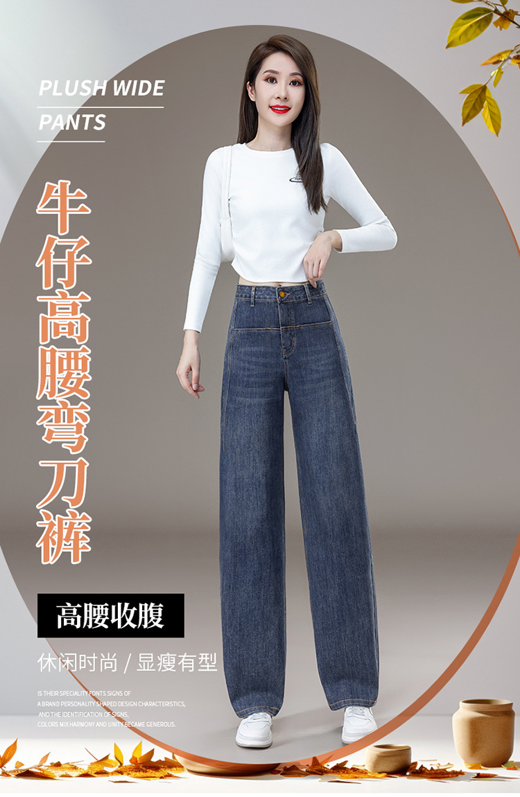 怀旧复古牛仔裤女秋冬季2025新款加绒加厚高腰弯刀裤阔腿宽松裤子