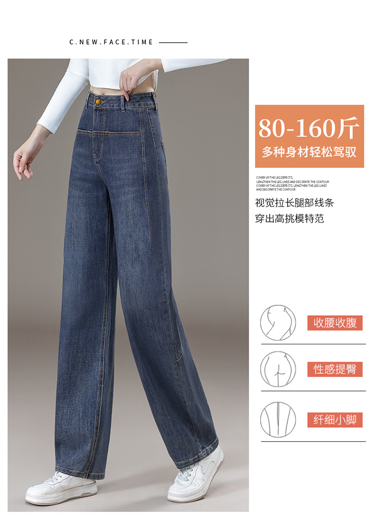 伸縮性ウエストのストレートジーンズ レディース 2025秋冬新作 ナローフィット ロング丈 ハイウエスト 大きいサイズ ドレープ感のあるワイドパンツ