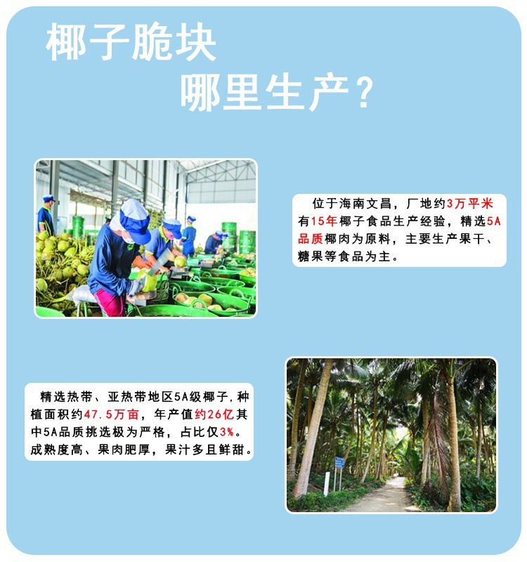 海南特产椰子脆块香脆脆片烤椰块新鲜椰肉小吃孕妇办公室休闲零食