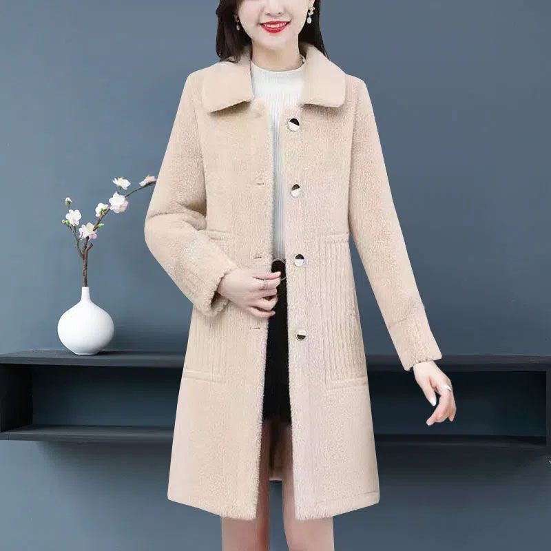 中年妈妈冬装羊羔毛外套加绒加厚中长款中老年人女洋气秋装大衣潮