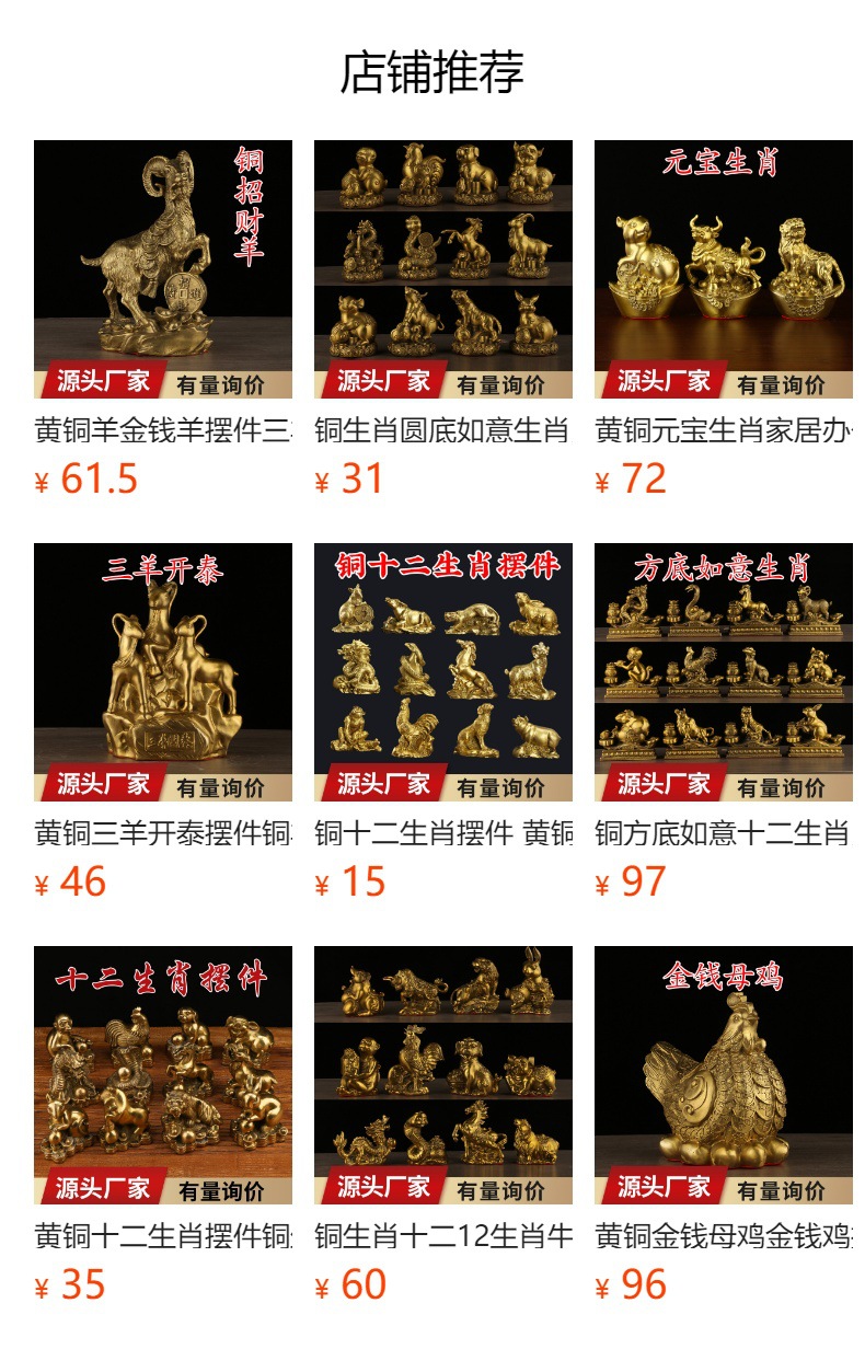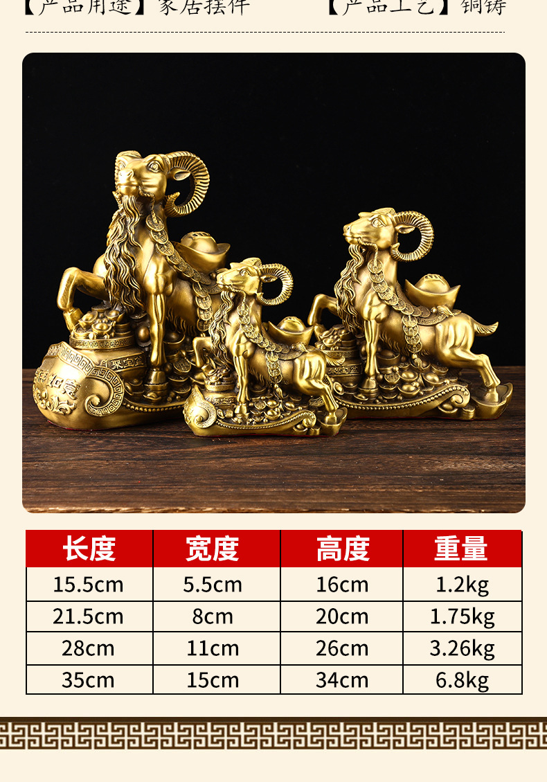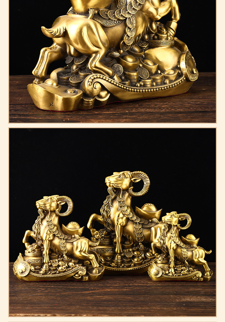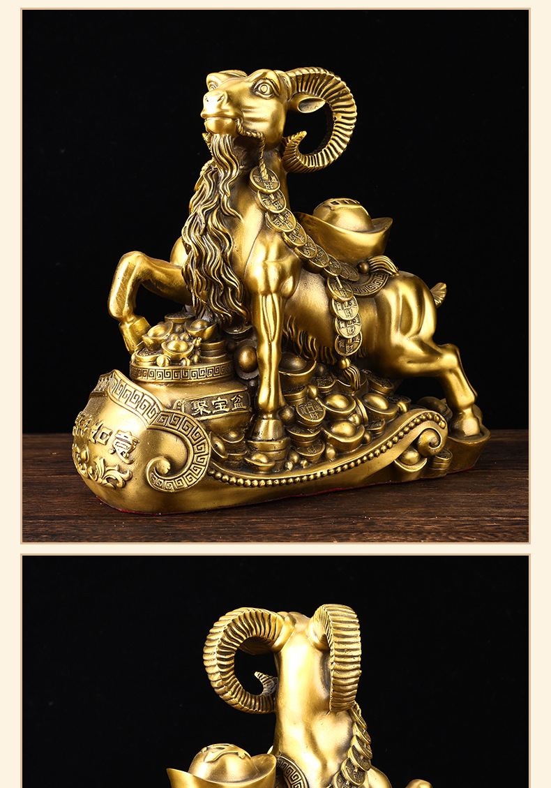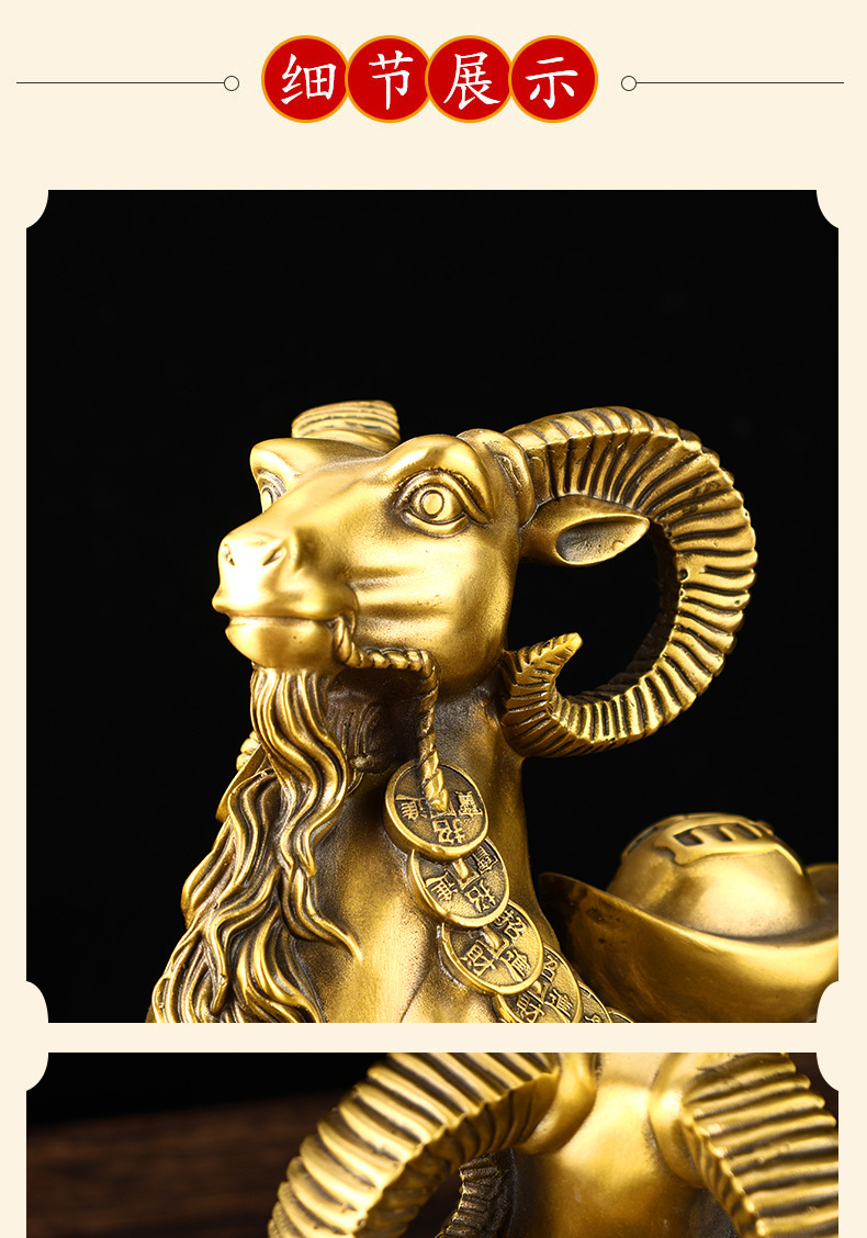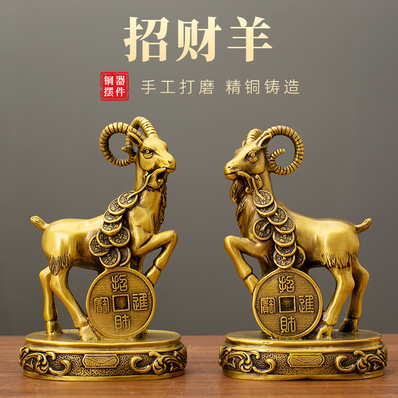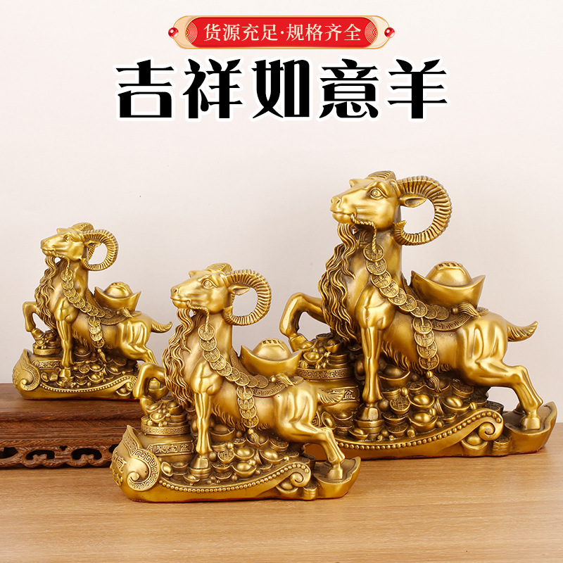 铜羊摆件黄铜十二生肖羊摆件如意羊家用客厅装饰品办公室公司开业
