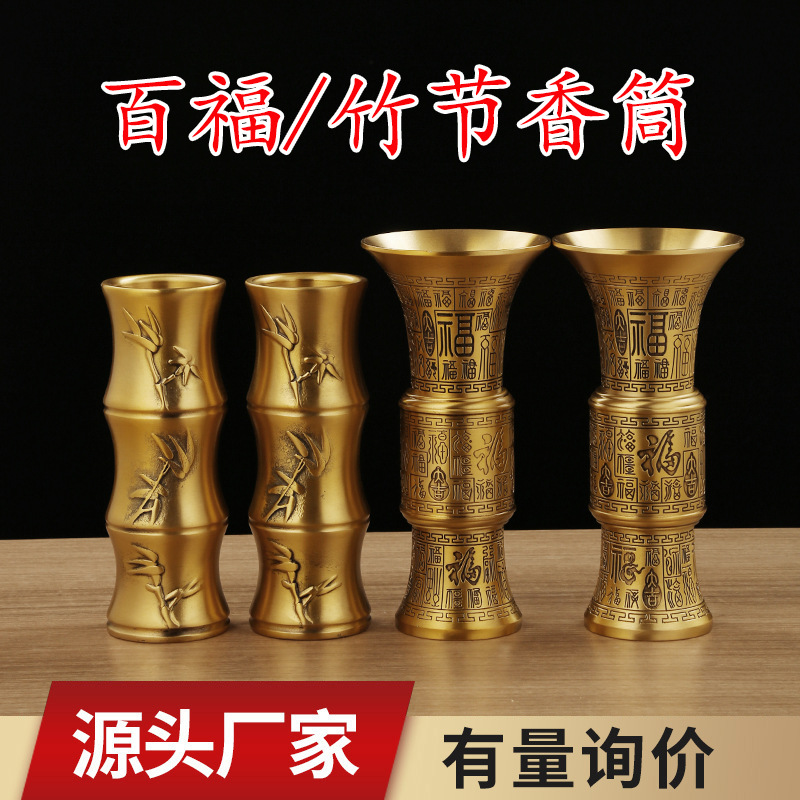 黄銅百福香筒竹節香筒装香挿香用具家庭寺院仏堂銅器工芸品卸売り