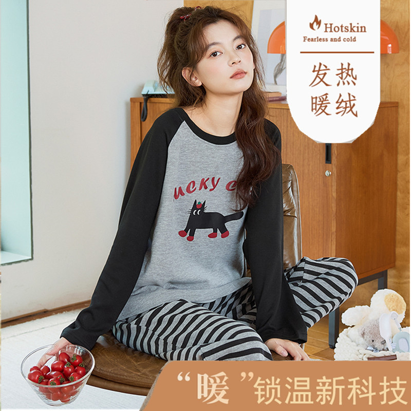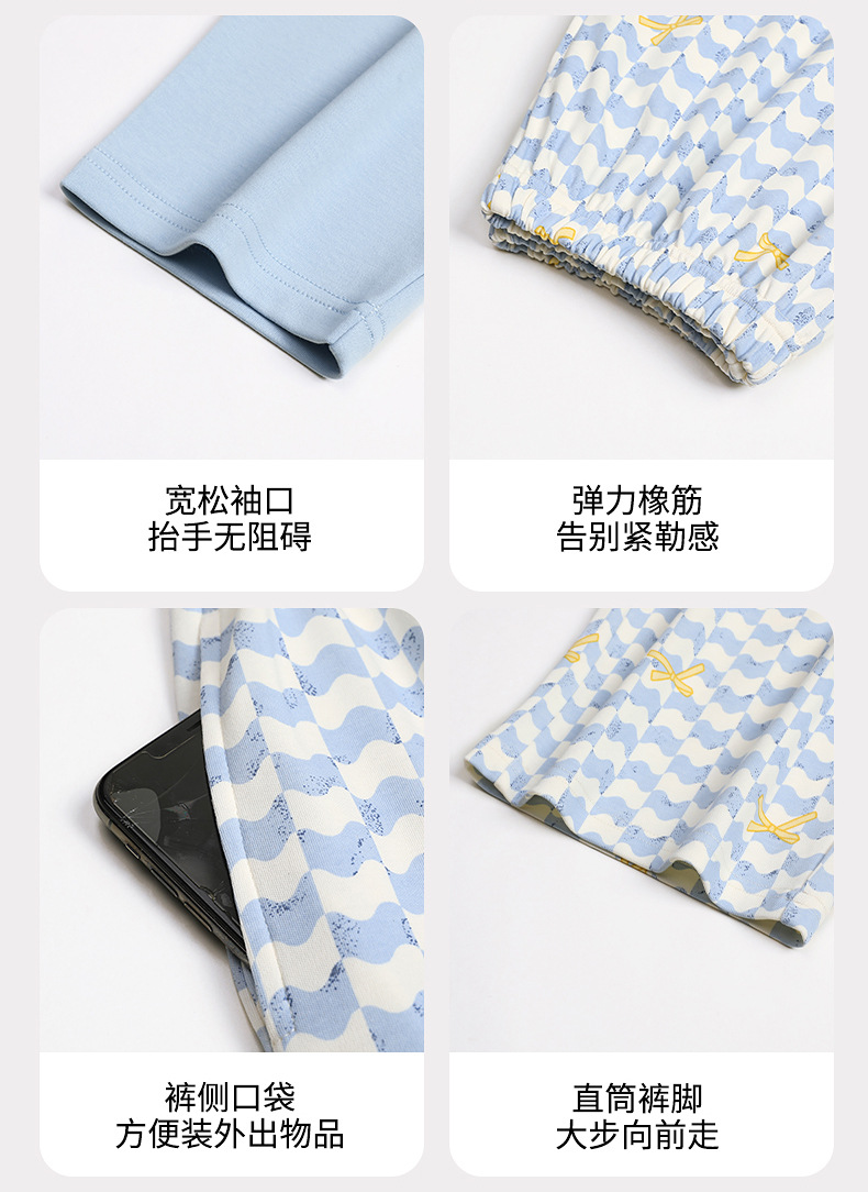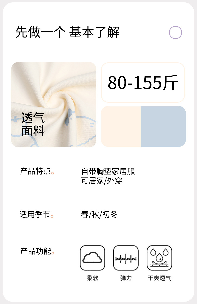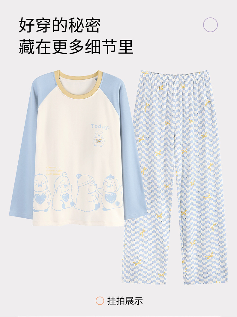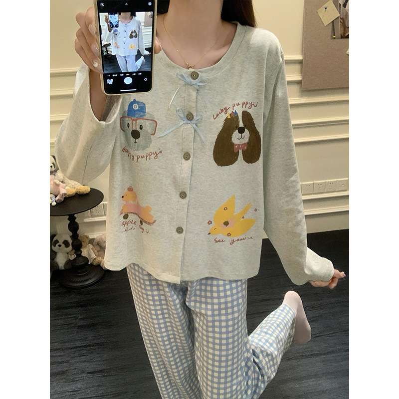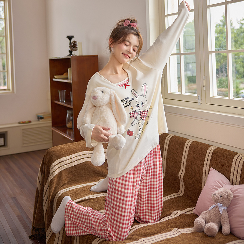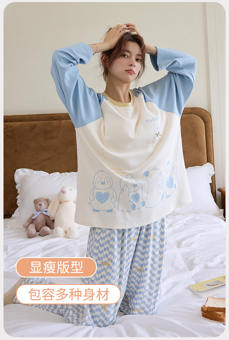 60棉带胸垫睡衣女春秋季长袖卡通可爱网红可外穿秋冬款家居服套装
