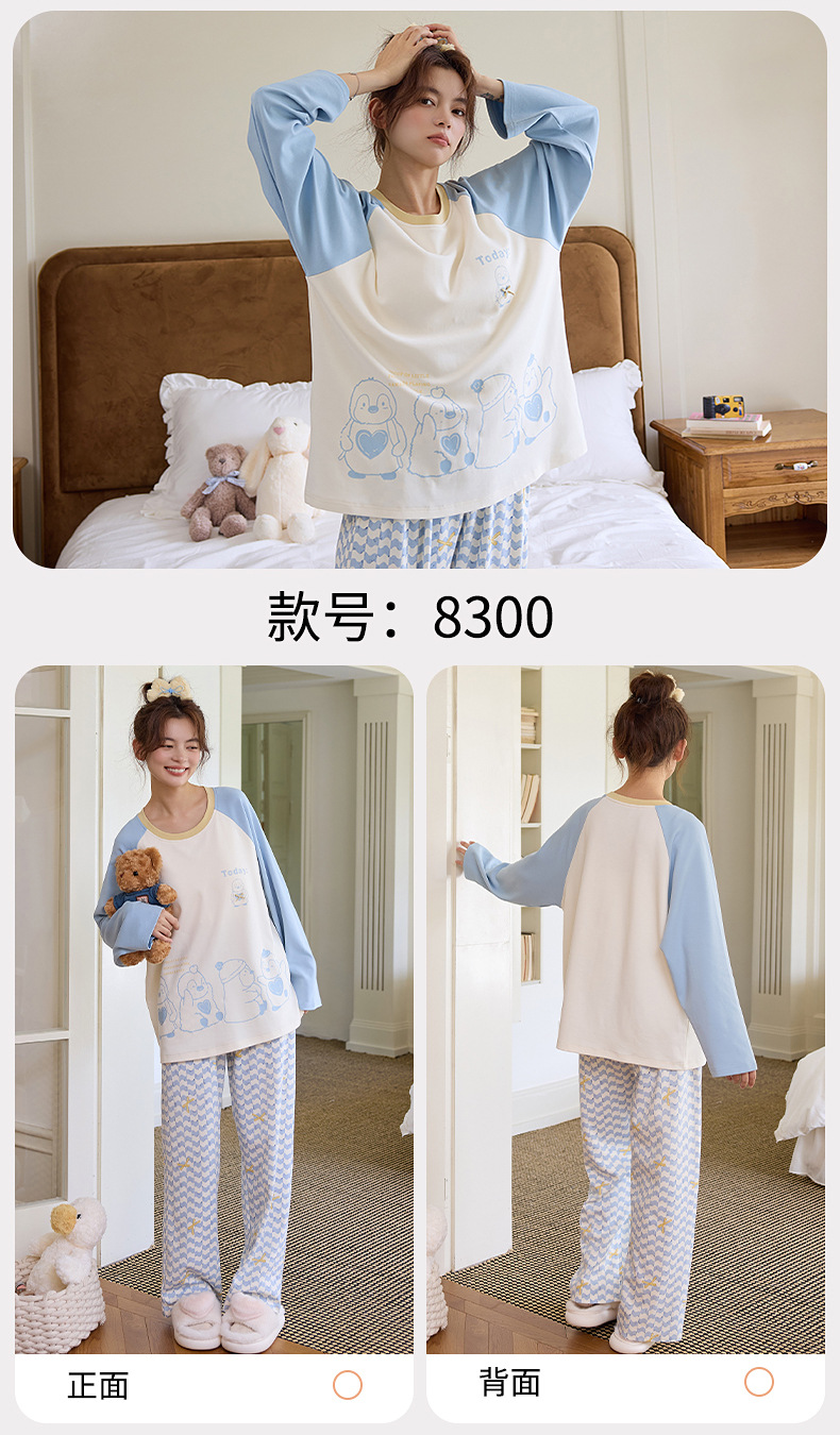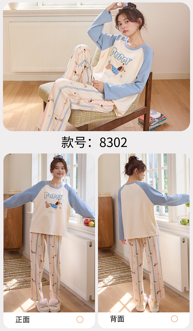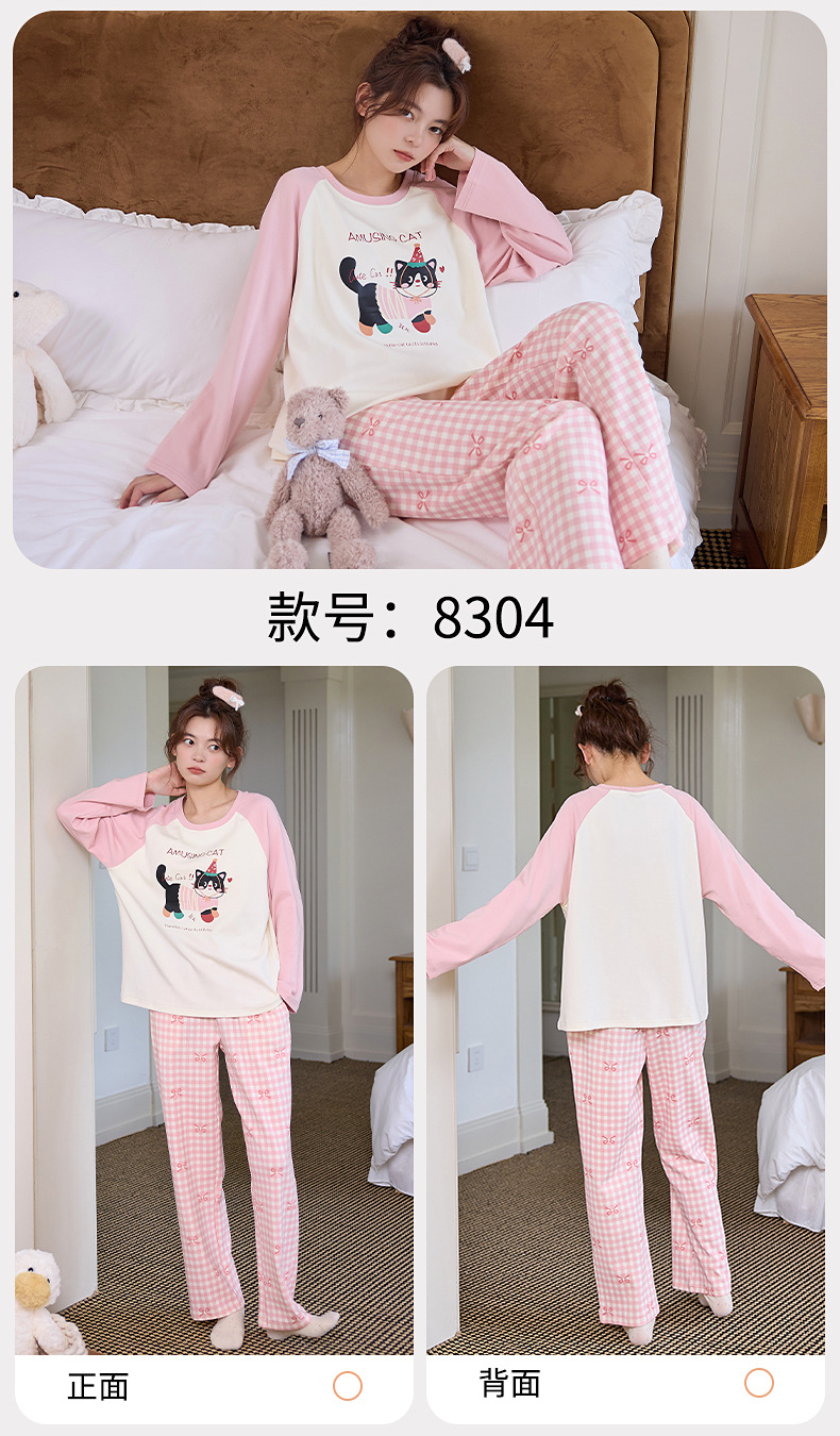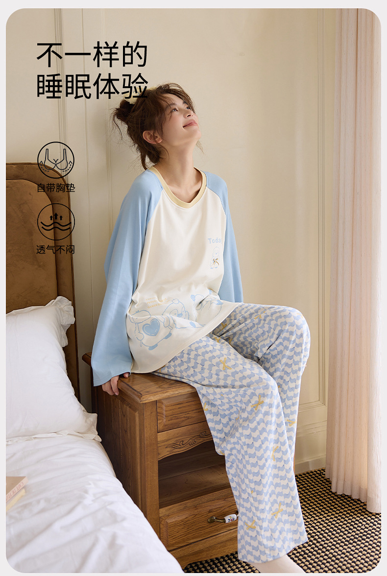 6535精梳棉带胸垫睡衣女春秋季长袖甜美卡通可爱少女套装学生套头