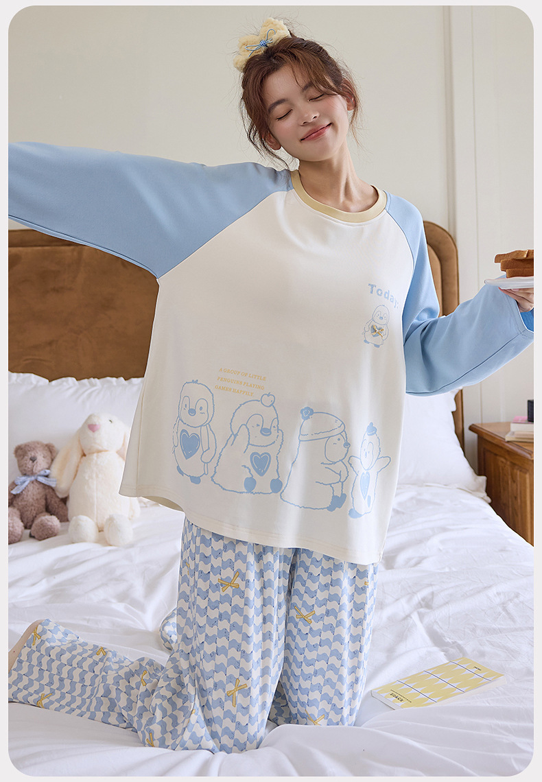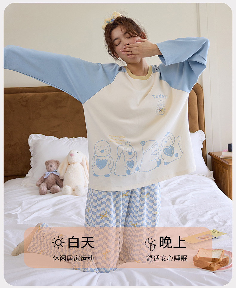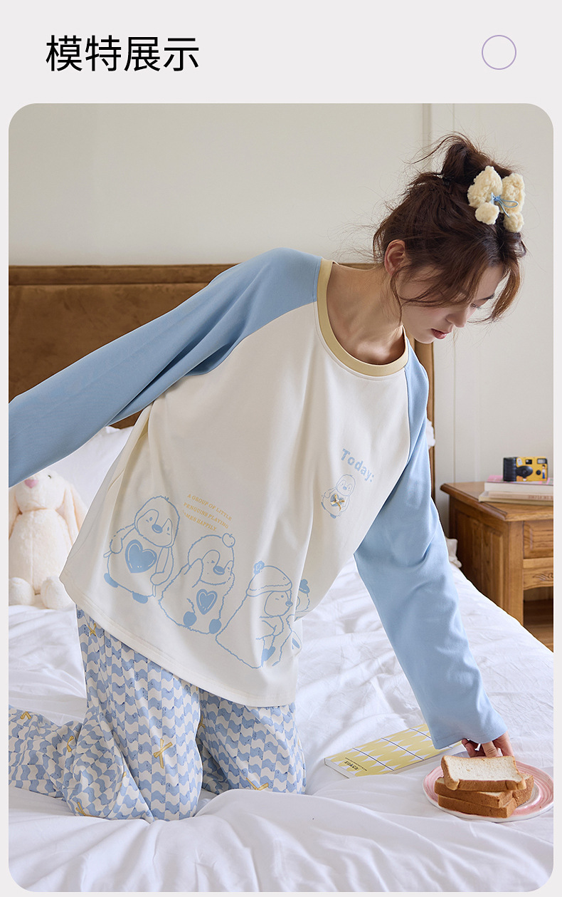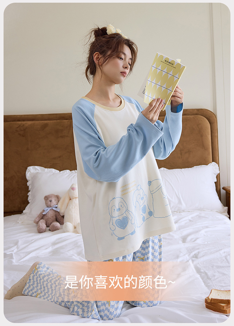 6535精梳棉带胸垫睡衣女春秋季长袖甜美卡通可爱少女套装学生套头