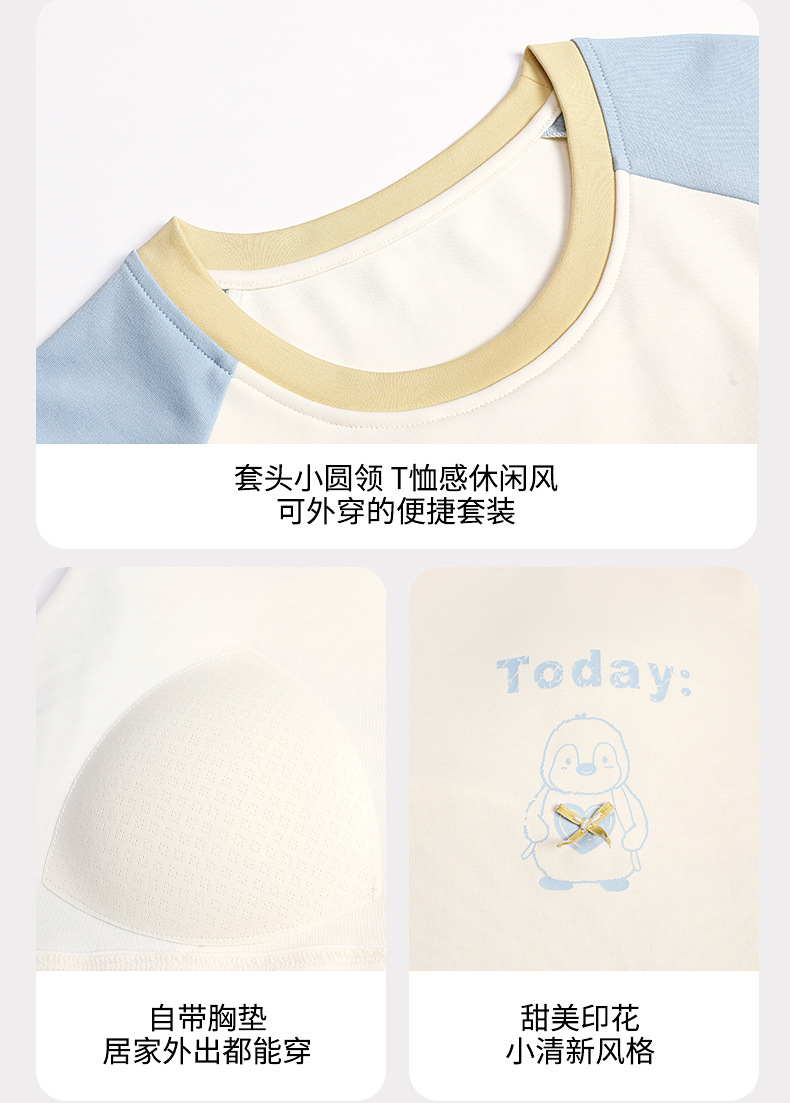 快適感パジャマ女性用夏の胸パッド付き春秋モデルのモーデール半袖夏の家庭服はスーツを着ることができる