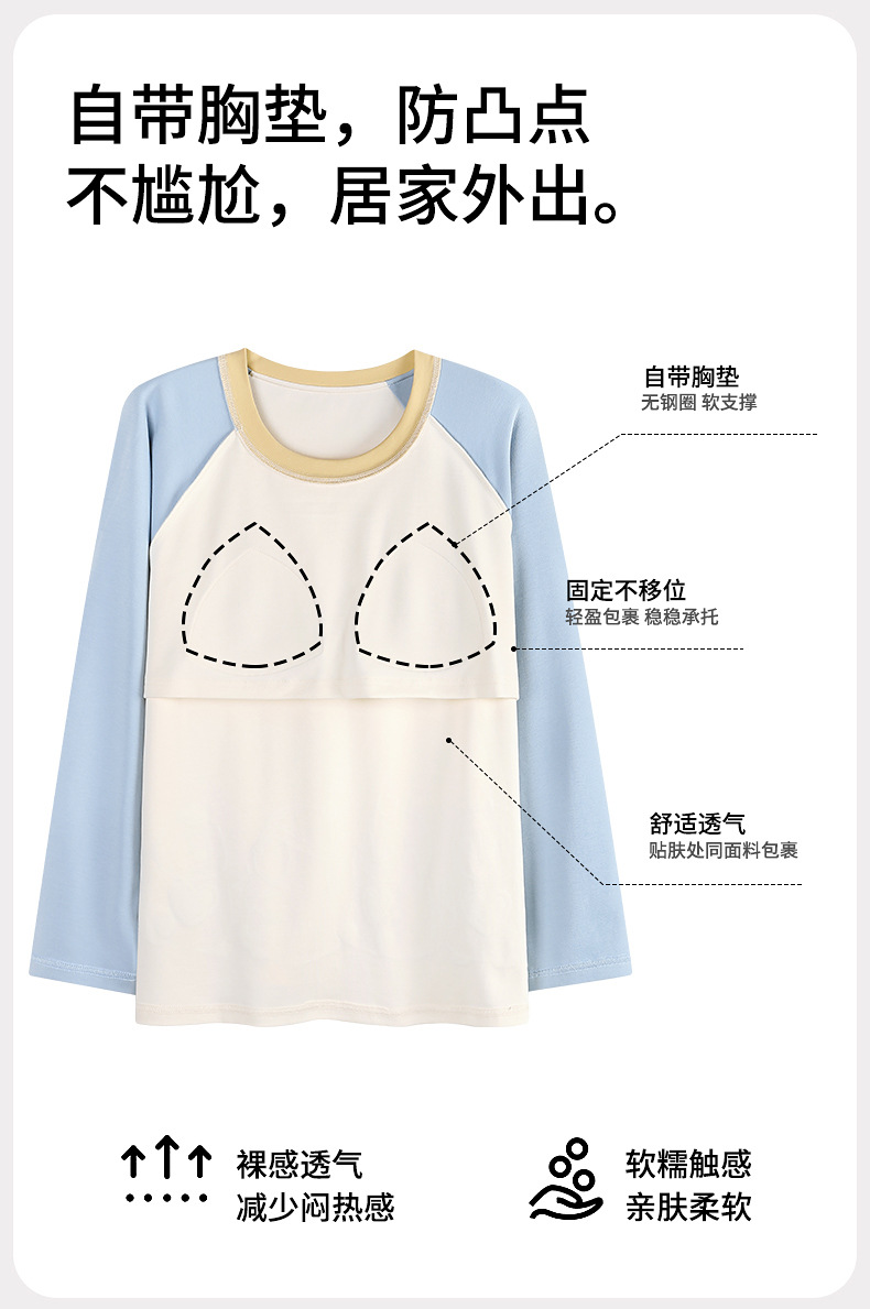 带胸垫长袖睡衣女春一体式薄款套头休闲套装2025新款家居服可出门