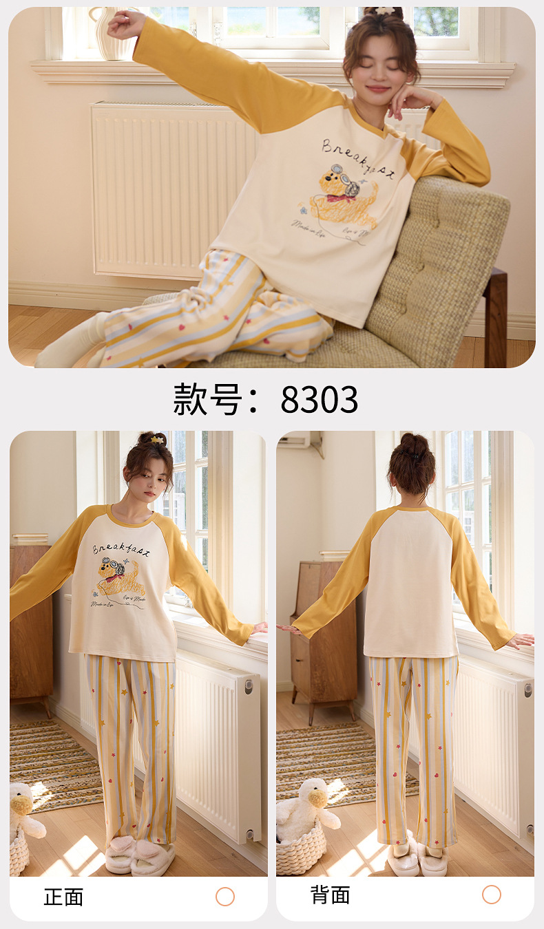 女性用パジャマ春と秋の長袖ズボンスーツ2025新入生インスタイル秋冬ゆったりホーム服
