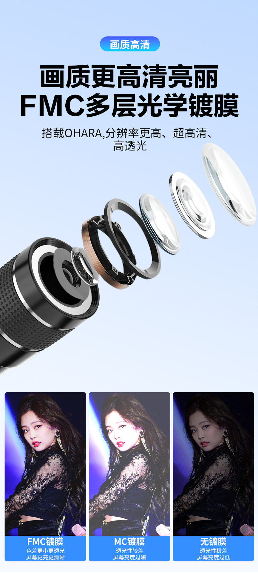 8X长焦手机镜头 镜头批发变焦望远高清无暗角手机外置八倍镜头厂