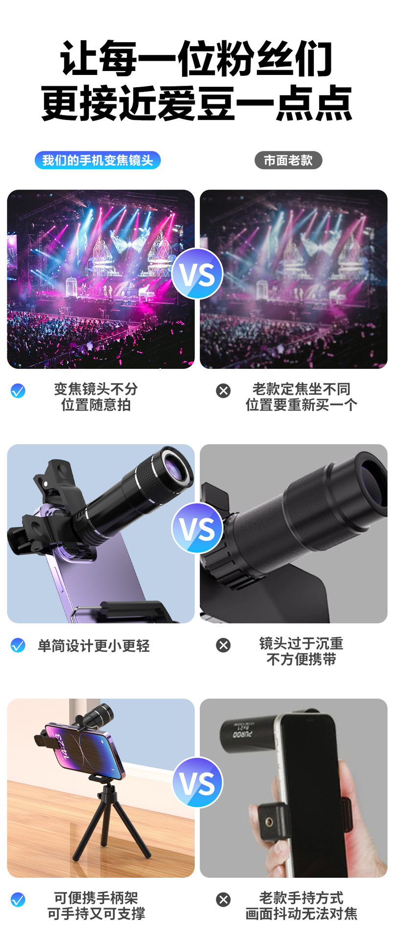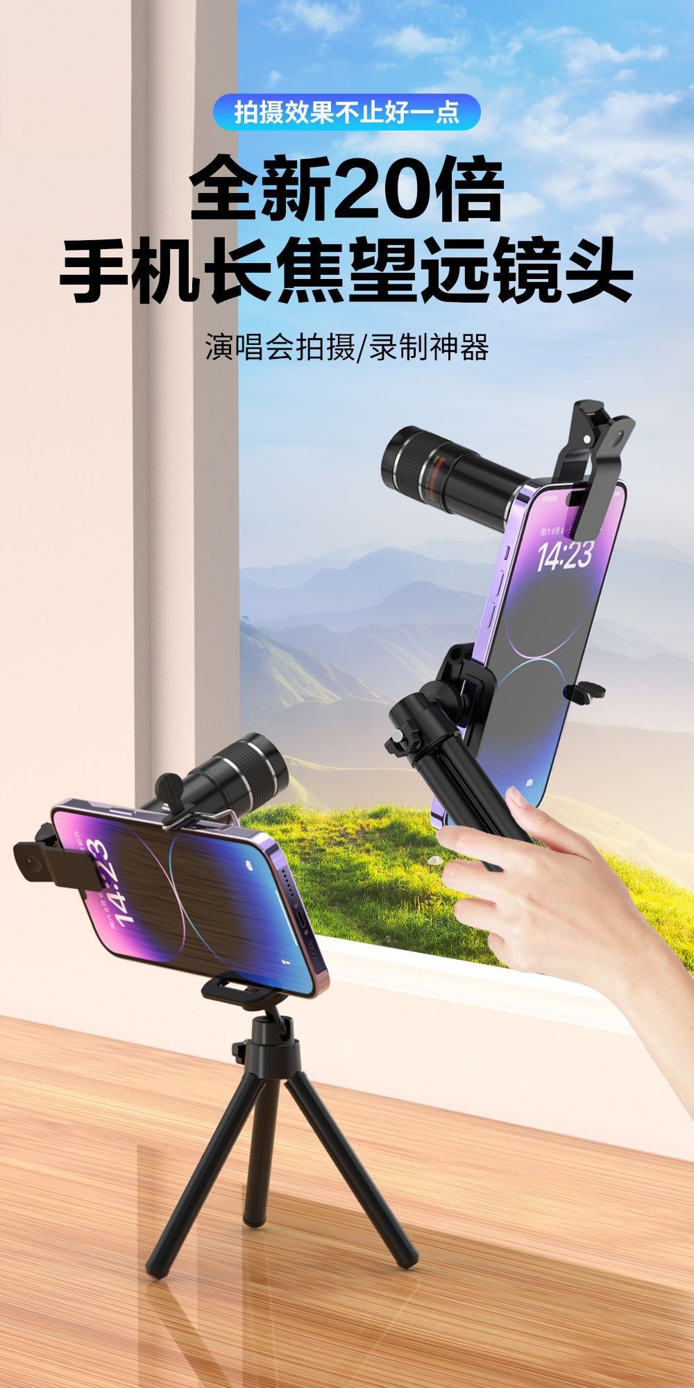 手机长焦20倍镜头演唱会拍摄神器望远镜外置摄像头音乐节手机镜头