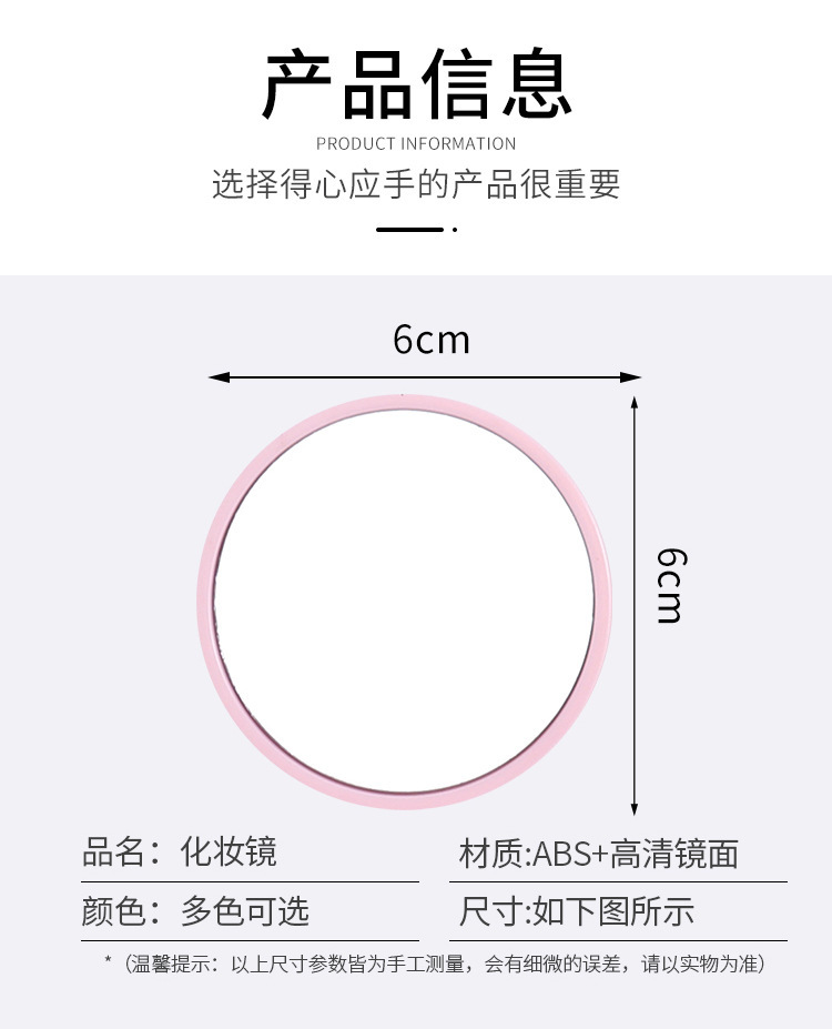 高清圆形小镜子随身镜子塑料镜化妆补妆镜子便携式6*6cm