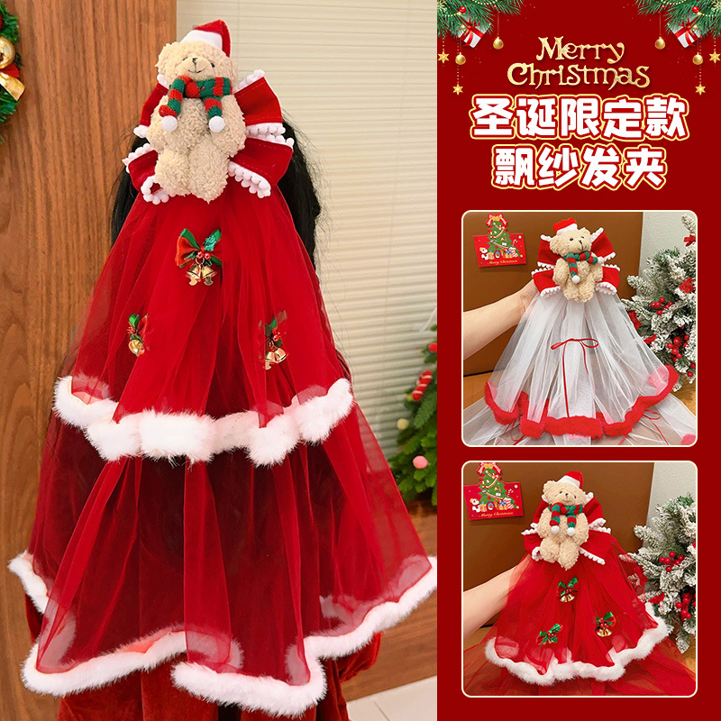 クリスマスの子供の頭の糸の赤いベルベットの蝶結びの王冠のヘアピンの女の子の写真の祝日は逃げています。