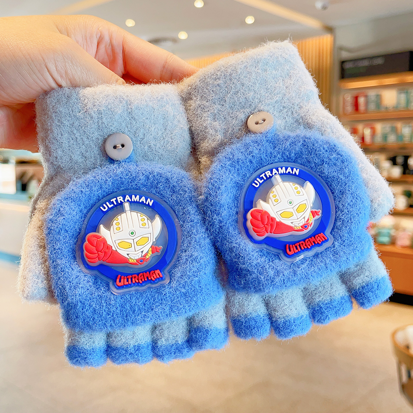 ウルトラマン子供ニット手袋秋冬保温男の子半指カバー毛糸手袋赤ちゃん学生手袋