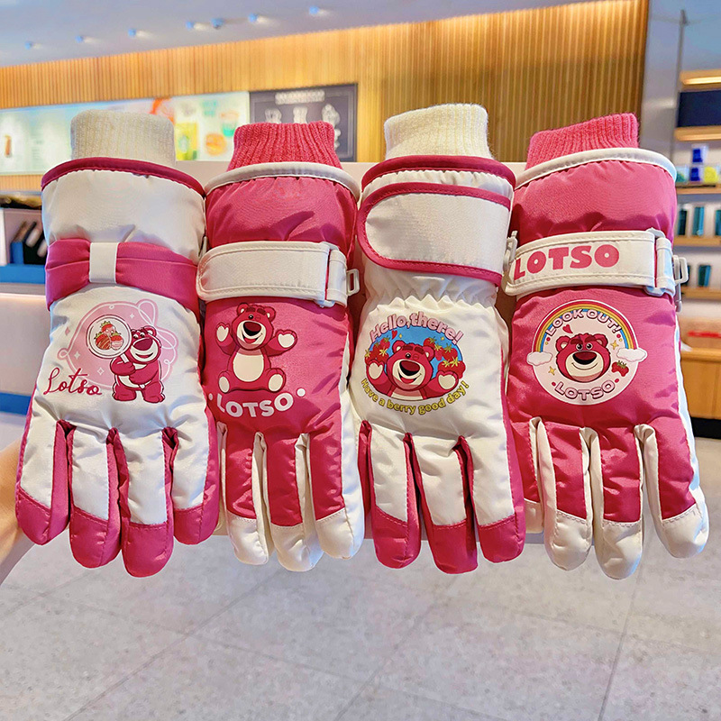 正版いちご熊児童スキー手袋男女児童かわいい冬保温防寒ベルベット厚い雪防水