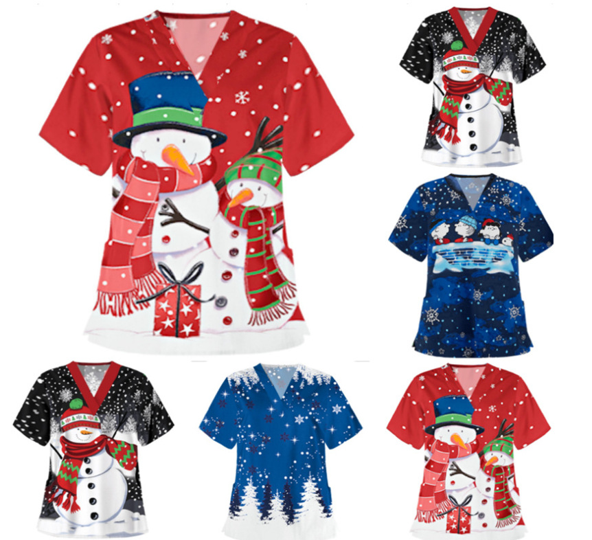 2021欧米の新型看護師装クリスマスプリントシャツvネック半袖底付きtシャツ女装大量スポット