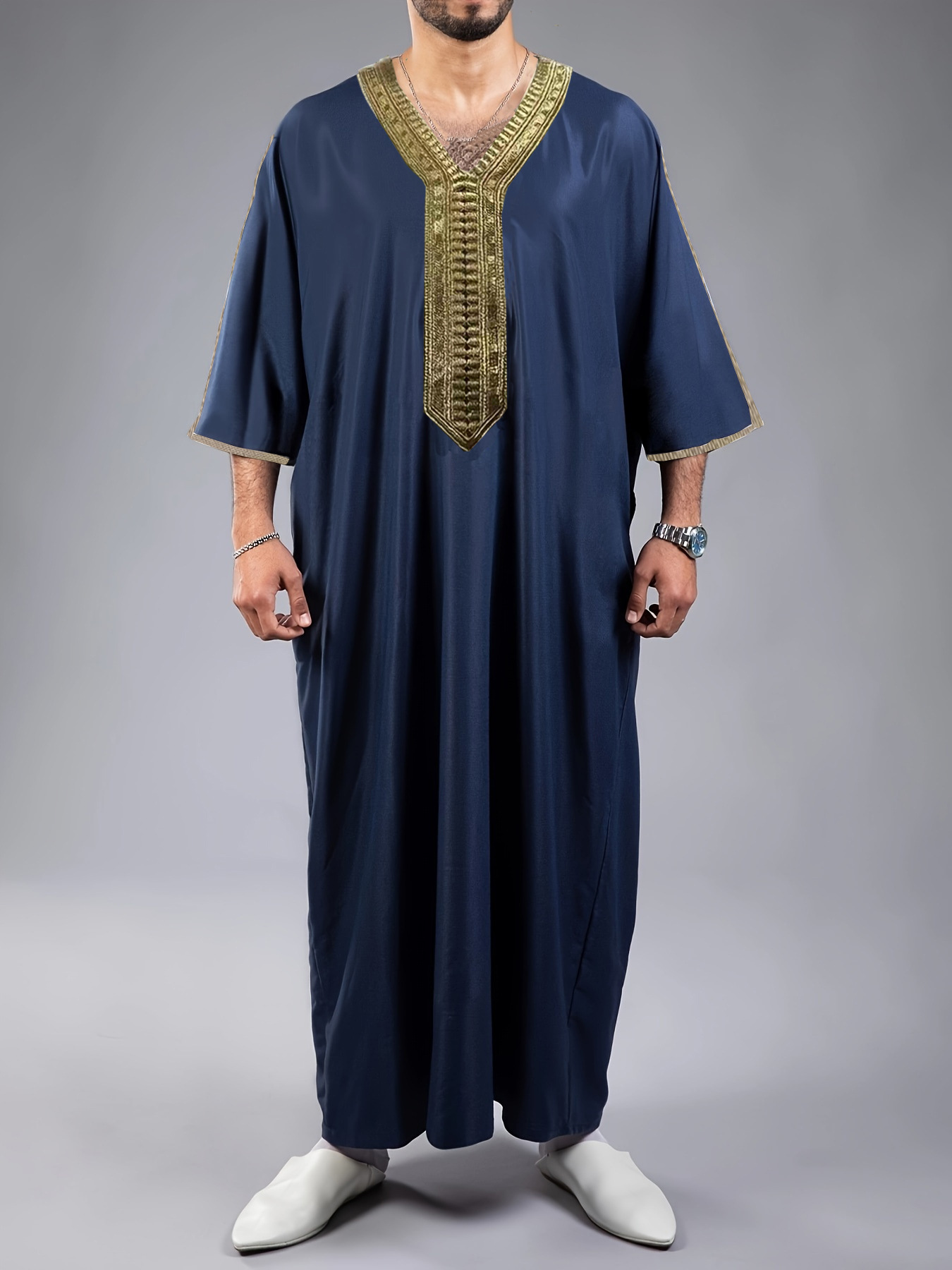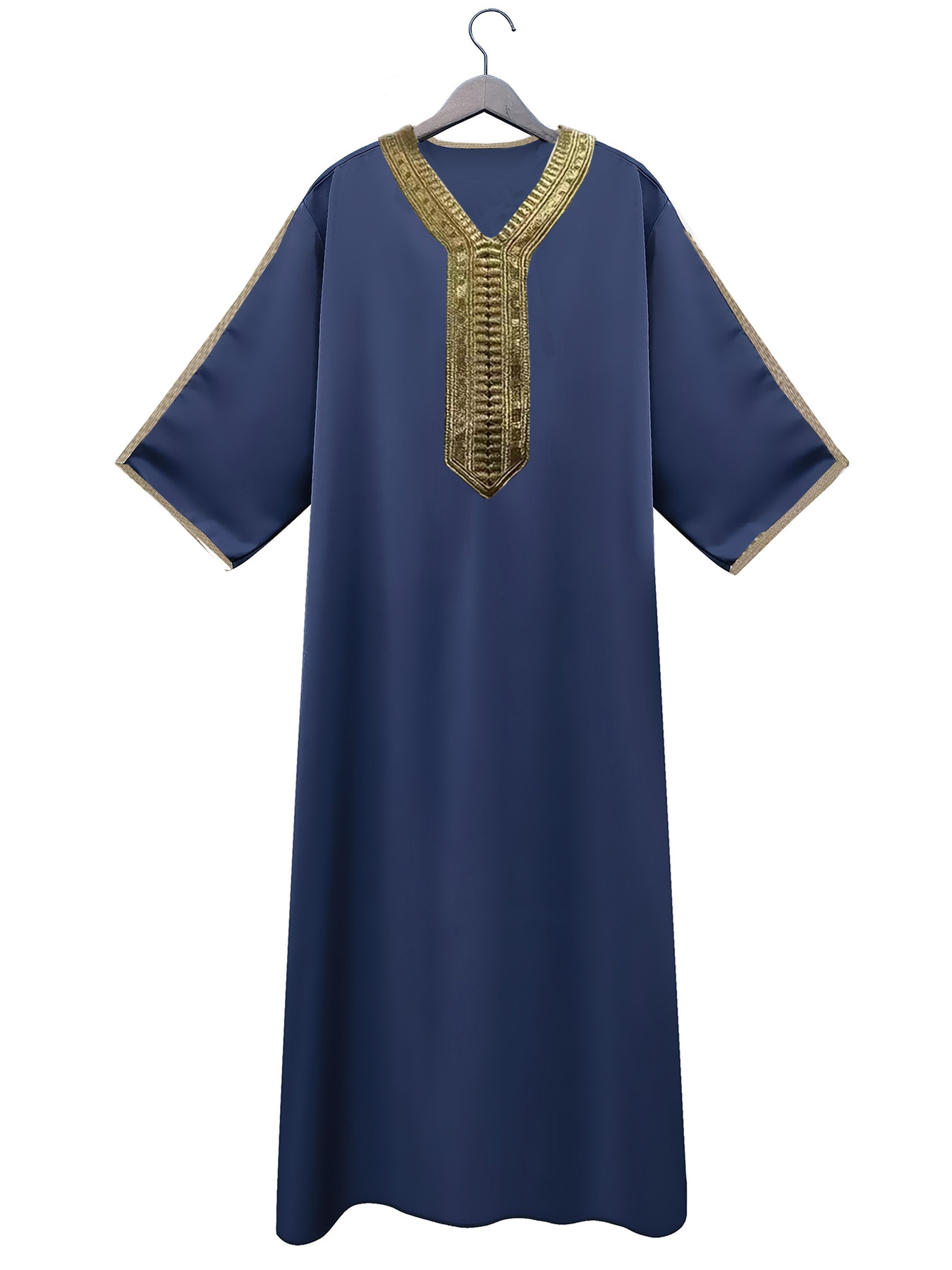 新型国境を越えた対外貿易イスラム男性半袖刺繍モロッコゆるい民族風アラブローブ