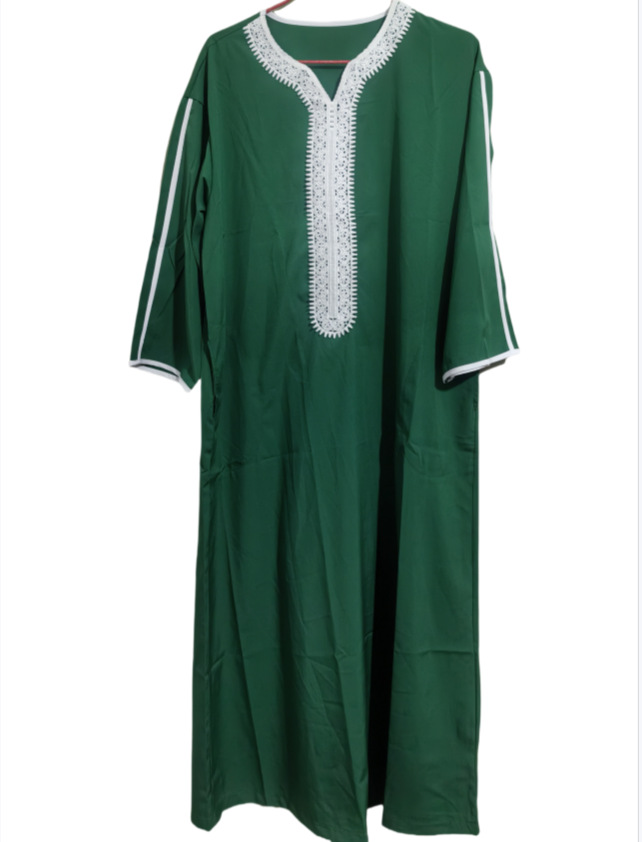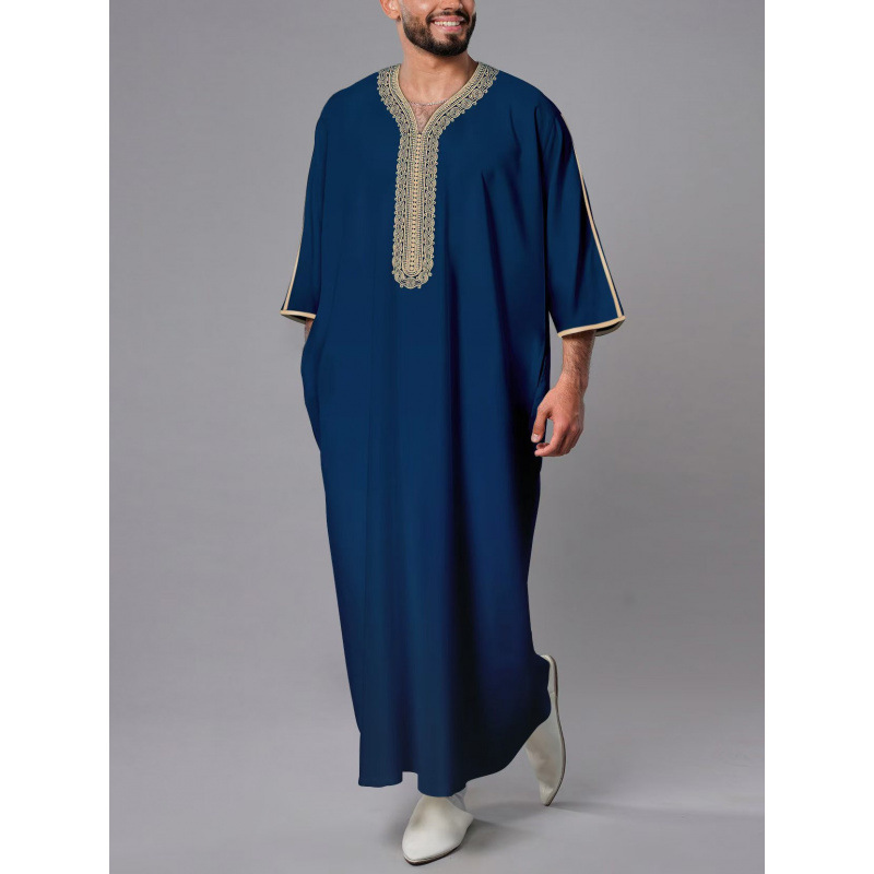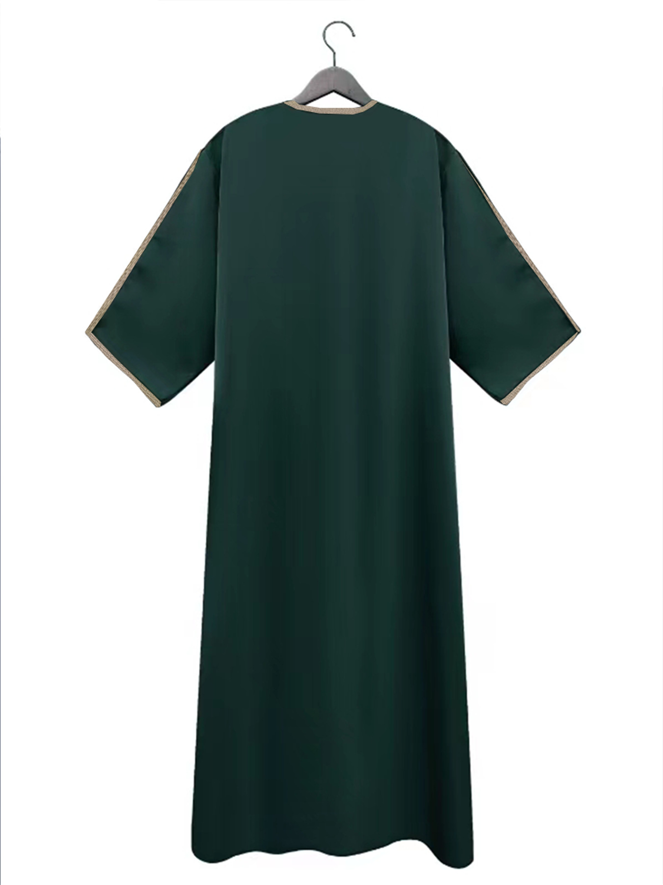 2025新型中東国境を越えた対外貿易イスラム教徒の中袖刺繍民族風モロッコ男性ローブ側ポケット