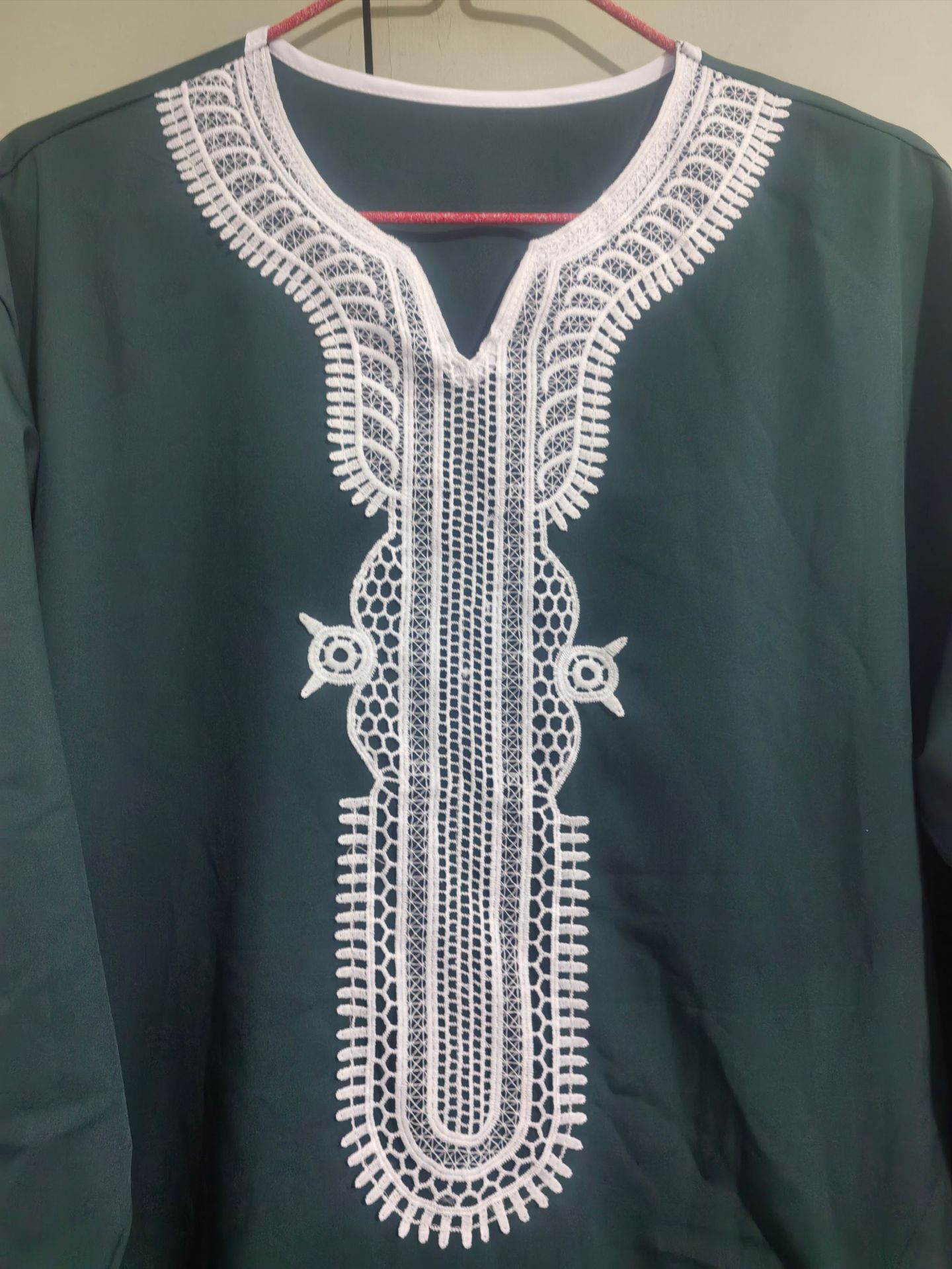 2025外国貿易クロスボーダー男性ロングシャツカジュアル青年普通黒ムスリム刺繍ガウン113824