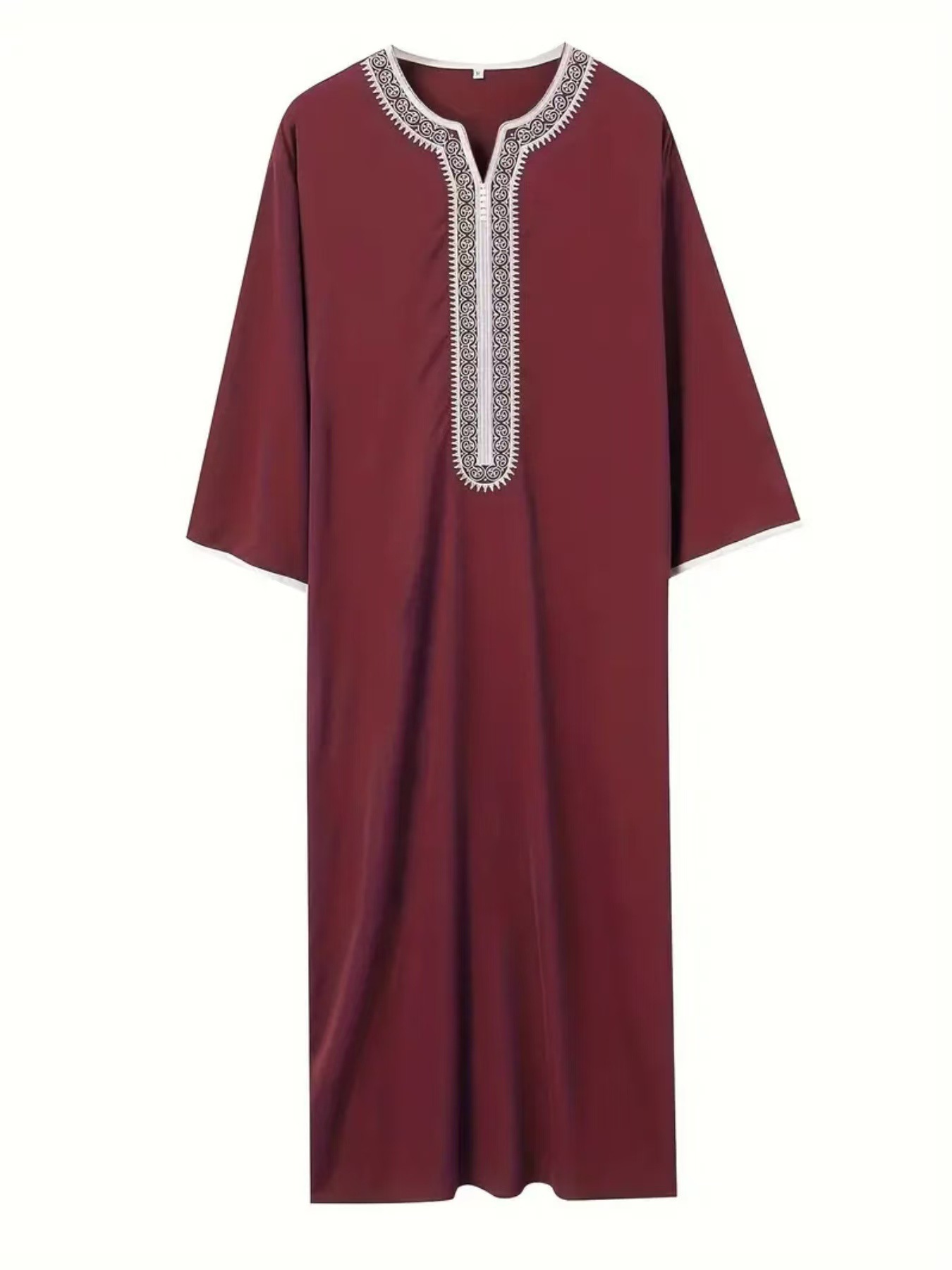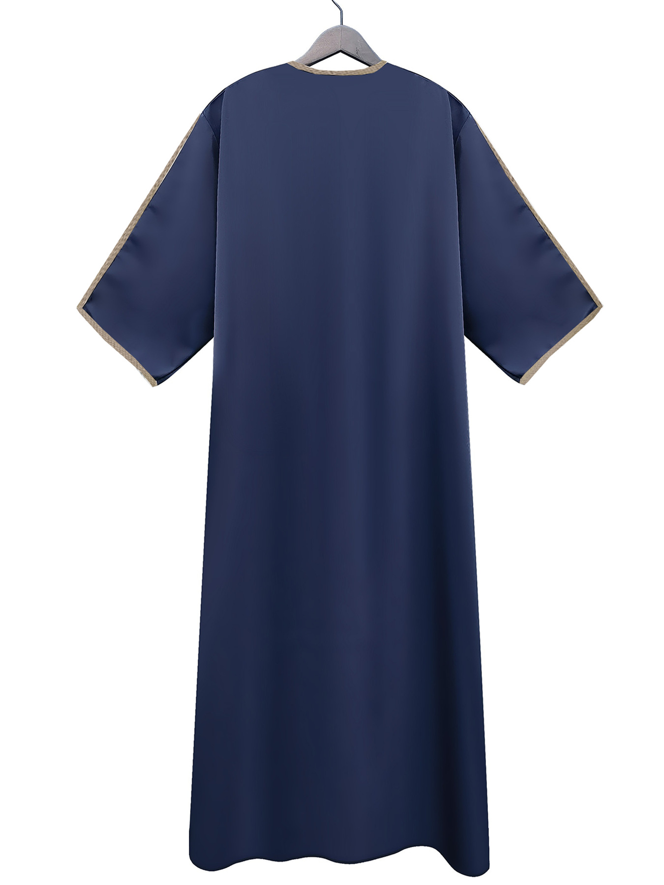 2025年新作 中東 無地 ムスリム 中袖 刺繍入り 民族風 モロッコ メンズ サイドポケット付きローブ