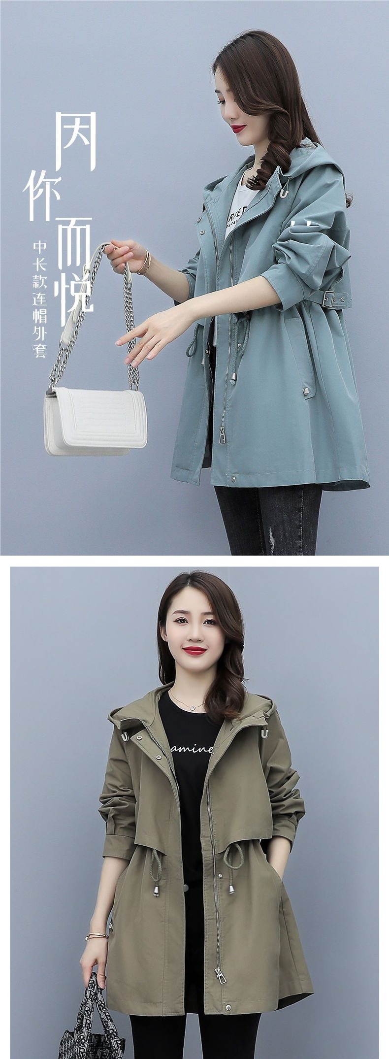 工装风衣女中长款年春季装新款宽松休闲时尚军咖色连帽外套潮