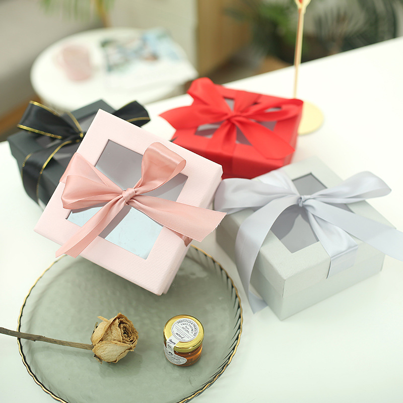 クリエイティブな正方形のギフトボックス、シンプルで透明な窓付きリボン付き包装箱、お土産、結婚式のキャンディボックス、卸売ギフトボックス