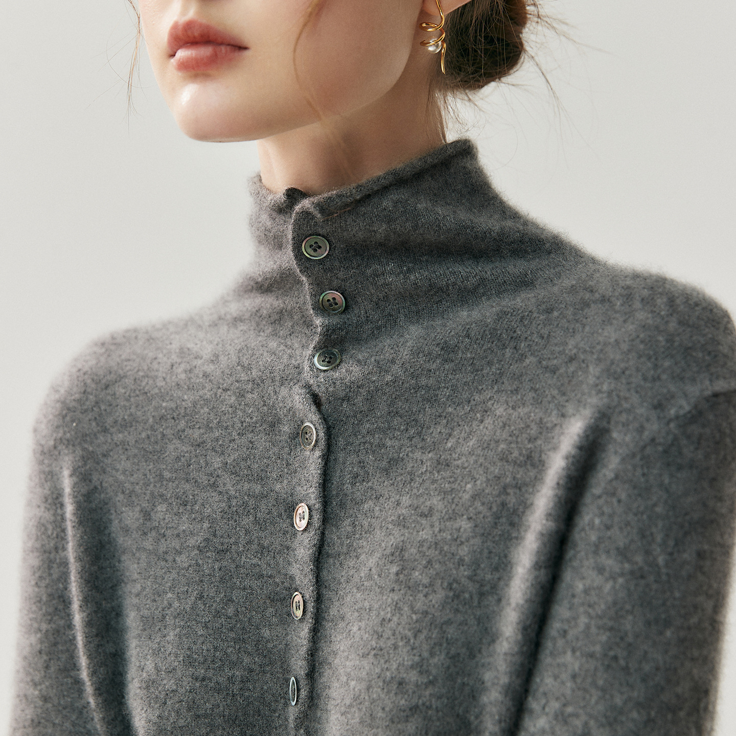 重磅奢品~羊绒开衫女卷边高领前后两穿系扣针织毛衣气质羊毛外套