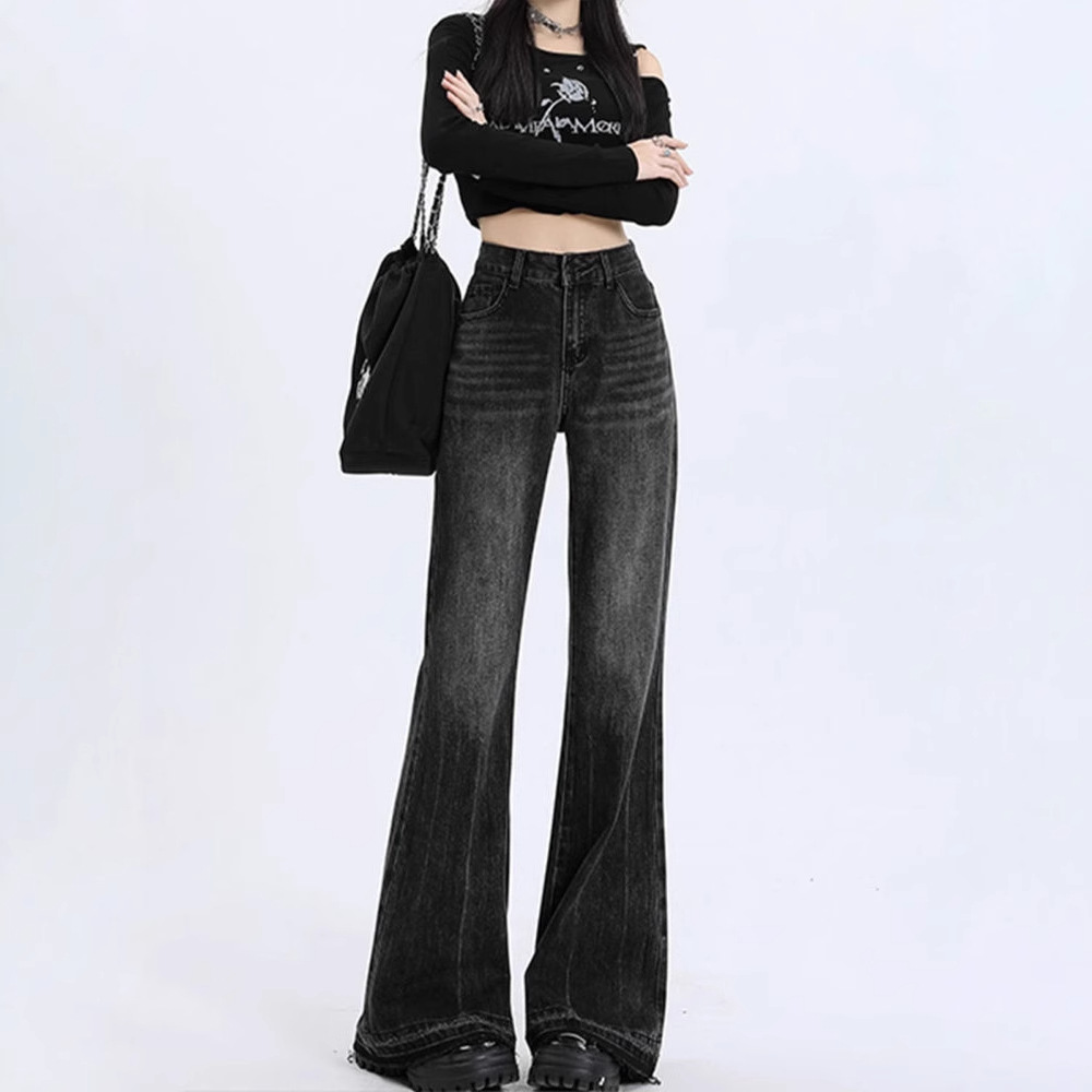 アメリカンレトロブルーブーツカットジーンズ女性のための夏の2025新しいハイウエストルーズペアシェイプボディフロアレングスワイドレッグパンツ