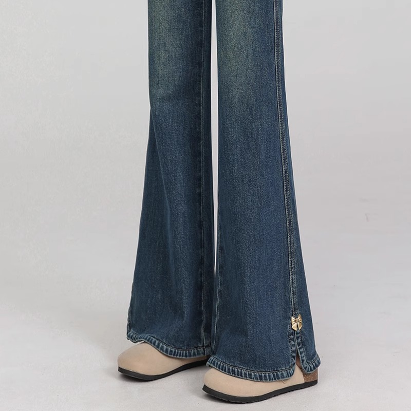 女性のためのレトロなブーツカットジーンズ 2025 夏の新しい大きいサイズファット mm ハイウエスト多用途フロアレングススリットフレアパンツ