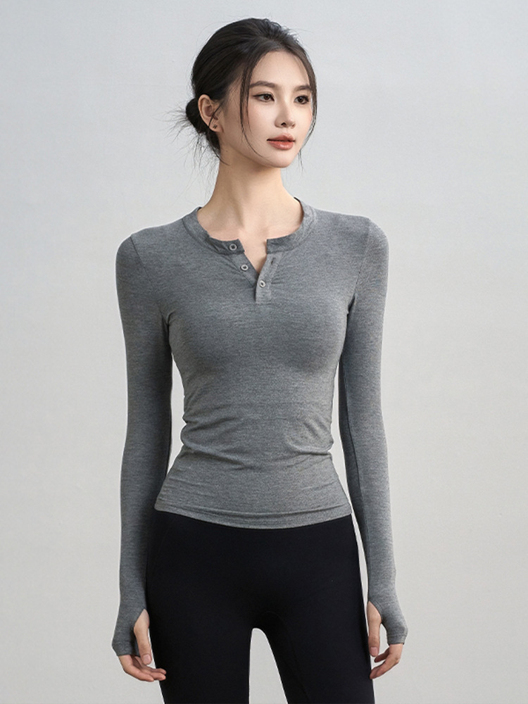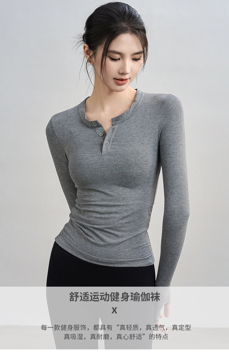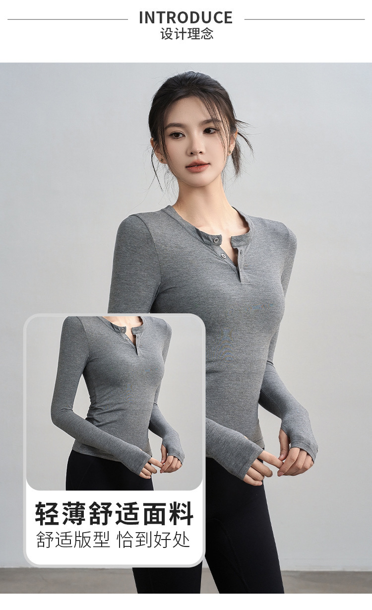 2025新款瑜伽服女紧身运动长袖普拉提训练健身上衣v领亨利衫T恤秋