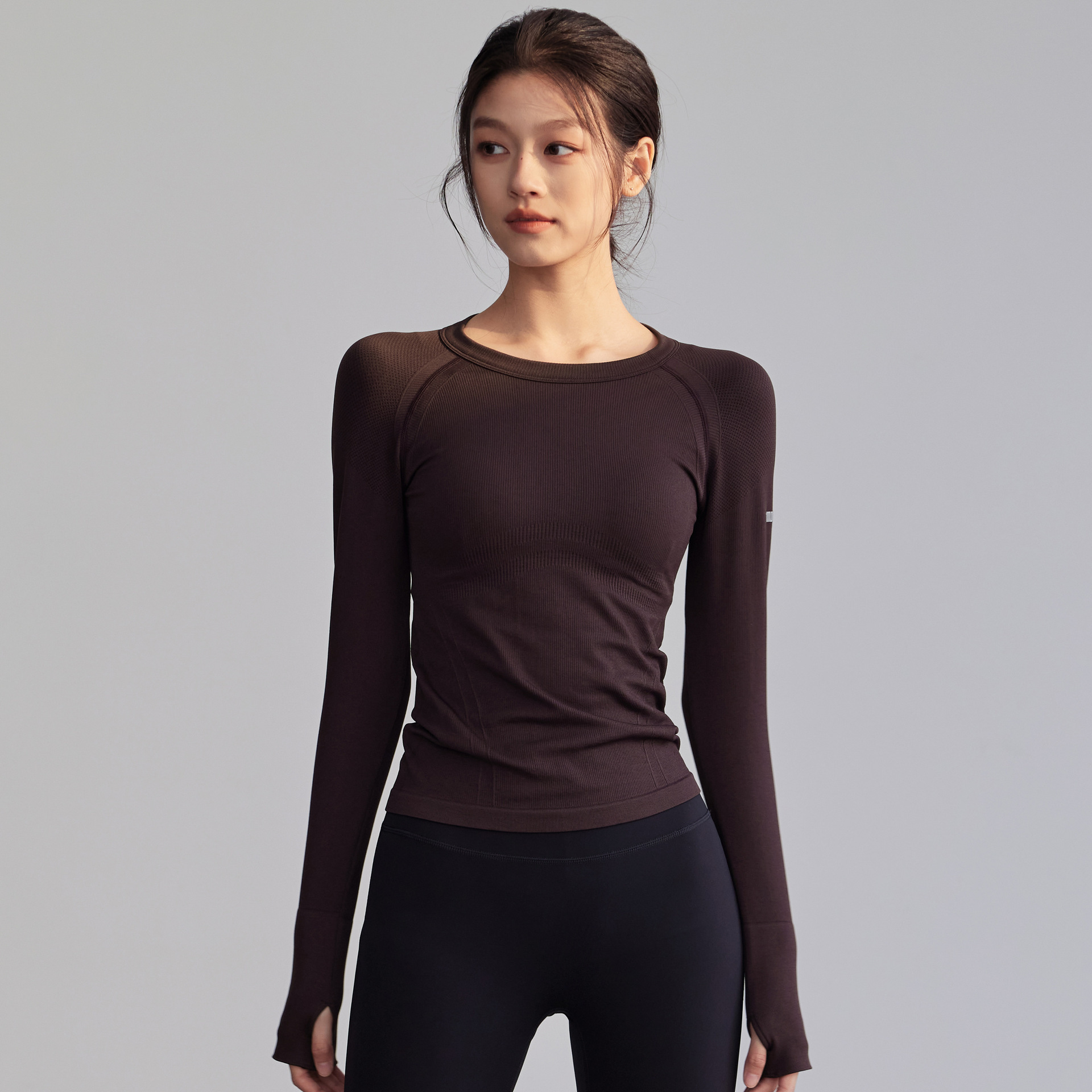 秋冬修身显瘦跑步透气瑜伽服修身长袖女运动上衣圆领普拉提跑步