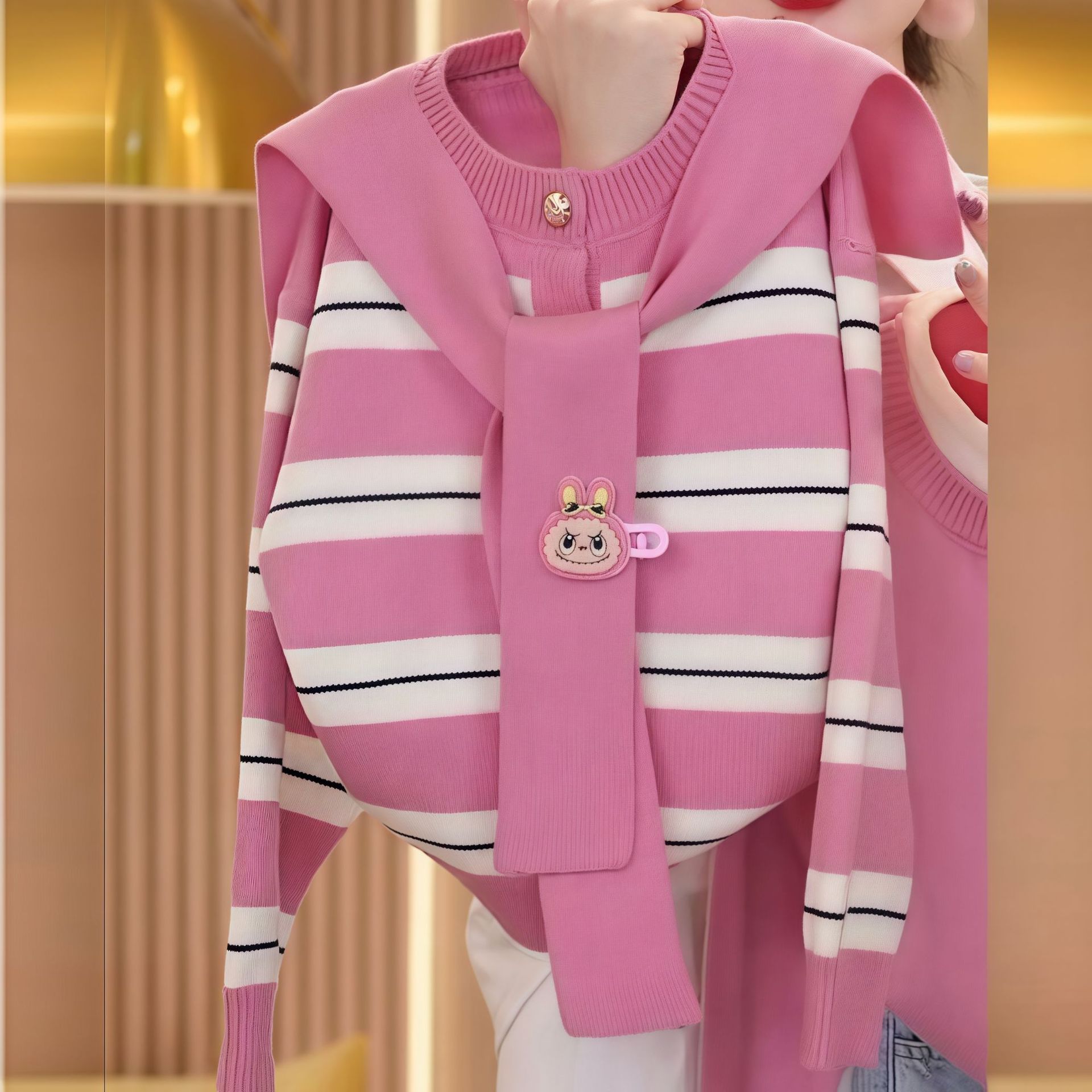 颜色 092烫钻牛仔裤,粉披肩条纹毛衣,108粉KT毛衣,108黄KT毛衣,139毛衣套装,108粉毛衣套装,108黄毛衣套装