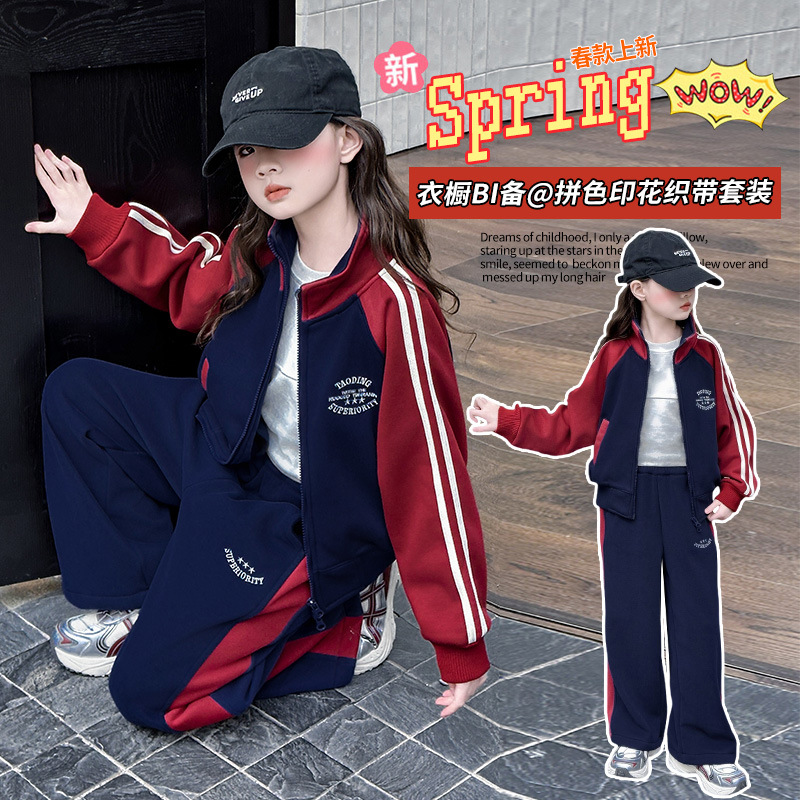 女の子春服セット2025春新作洋気女の子スポーツウェア中大童コートラッパズボン2点セット