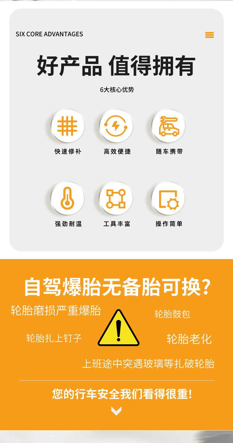 快速タイヤ補充ツールセット緊急運転に必要な真空タイヤゴム条穿刺タイヤ補充ツールセット