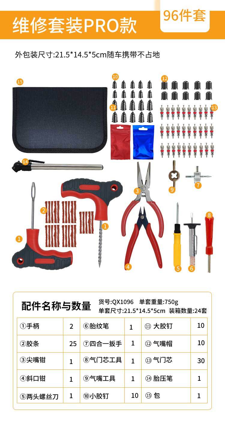 规格型号 65pc补胎工具套装包,96pc补胎工具套装包,73pc补胎工具套装包